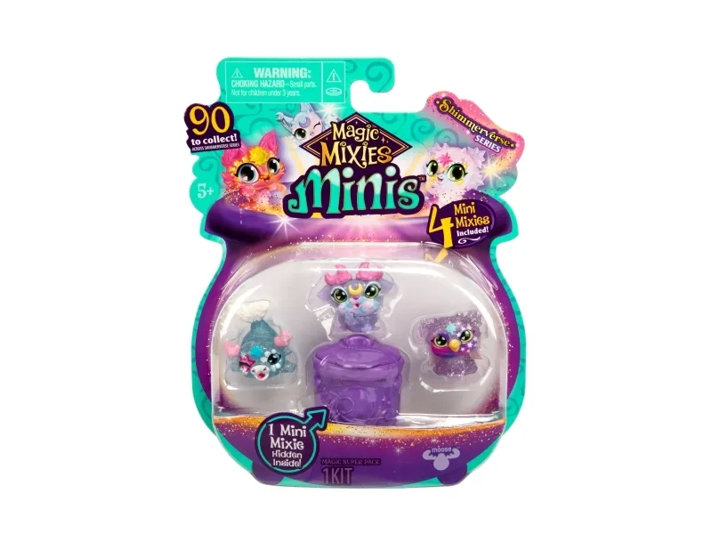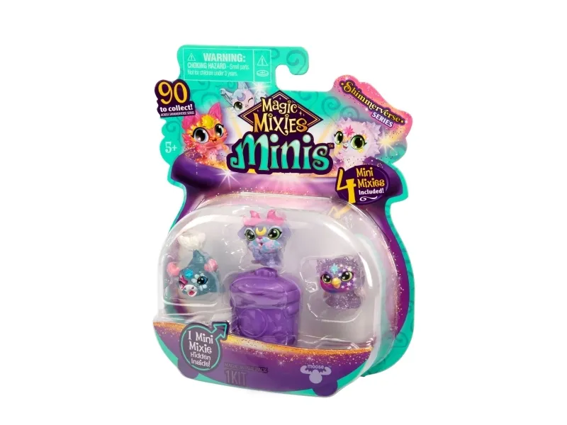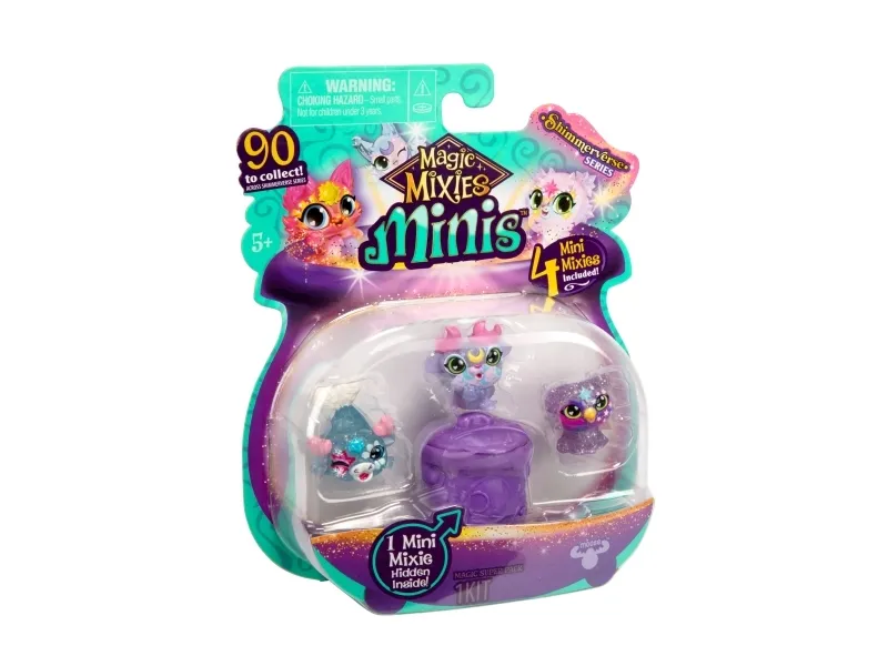Velkommen til Shimmerverse! Nu kan dit barn træde ind i et nyt magisk rige, hvor Mixies spreder deres magi ud over verden og efterlader et lille gnist, hvor end de går! Magic Mixies Minis er små i størrelse, men store på overraskelse! Skælmagtige og magiske, Minis er så sjove med alle deres forskellige måder at lege på! Der er 90 Magic Mixies Minis, som børn kan samle på, fordelt på 5 nye magiske kræfter - Stjernelys, Is, Sol, Regnbue og Månesten. Hver kraft har en anderledes magisk åbenbaring såsom glødende, gnistrende afsløring og farveskift! Måske finder du en Limited Edition Light-up Heira! Magic Mixies Minis 4 Pack indeholder 4 Mini legetøjsfigurer, herunder 1 Mini Mixie skjult inde i en Gryde. Saml alle 90 Magic Mixies Minis og følg med, når de rejser gennem Shimmerverse og drager ud på et nyt eventyr i den virkelige magis verden!