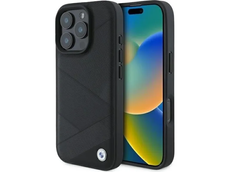 BMW BMW BMHCP16X23RCGPK iPhone 16 Pro Max 6.9" czarny/black hardcase Sign Leather Crossing Lines Pattern
