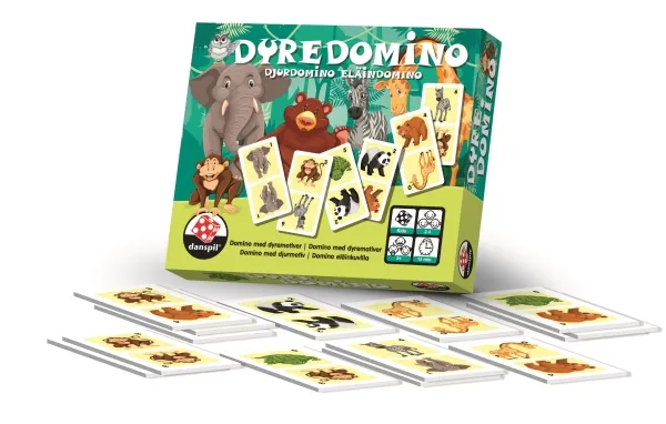 Barnedominospill, hvor det gjelder å matche brikkene. 2–4 spillere. Dyredomino er et barnevennlig dominospill med fargerike dyremotiver på kraftig papp. Dyremotivene gjør det morsomt og enkelt for barna å spille. Hvem er den første til å matche brikkene sine med brikkene på bordet og vinne spillet? Spilletid: Ca. 15 minutter. For 2-4 spillere. Fra 3 år.