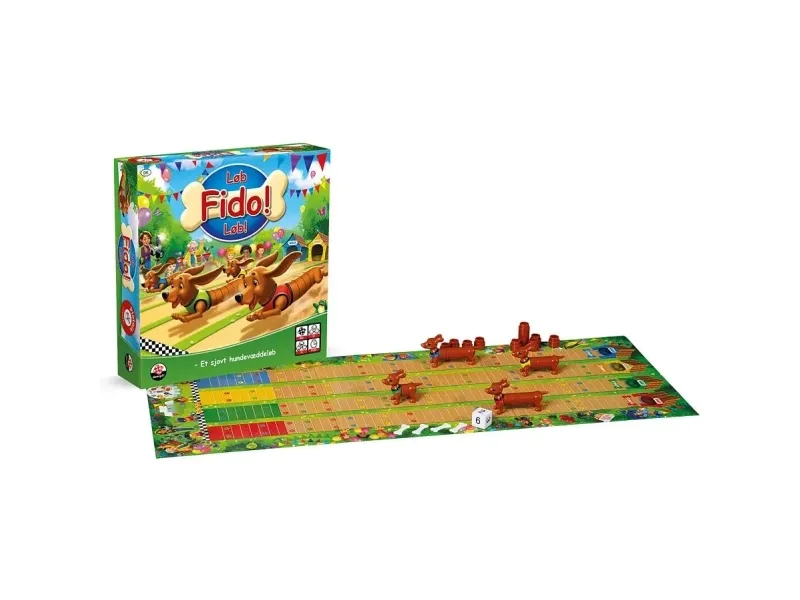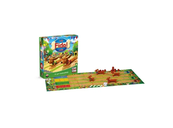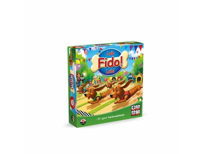 Løp Fido Løp! er et spennende mann-mot-mann kappløp med våre firbeinte venner! Husk ... det lover ikke godt hvis hunden din blir lengre og lengre i løpet av spillet. Kast terningen, flytt hunden frem det antall skritt som terningen viser. Hvis forpotene lander på de fargede potene på brettet, legg til et magestykke på hunden. Den spilleren hvis hund er den første som krysser målstreken med halen vinner spillet. Spilletid 15 min. For 2–4 spillere. Fra 4 år.