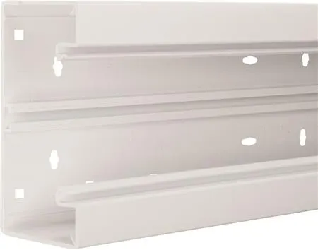 PC/ABS halogenfri installationskanal Installationskanal fremstillet af halogenfri kunststof i henhold til DIN EN 50085-1 Halogenfri kunststof er brandhæmmende og udvikler i forbindelse med brand ikke ætsende brandgasser. Hvorved elektronik er bedre beskyttet. Standardlængde er 2 meter, kanalen kan på bestilling leveres i den længde der passer dig, op til 6 meter. Ved bestilling af kanaler i special længder sparer du tid og penge, og sammen sparer vi miljøet for unødig belastning. De indbyggede samlelasker sikrer perfekte samlinger, og gør det nemt også at lave det som en én-mands-installation. Kanallåg er 80mm højt. Der findes et bredt sortiment af formstykker, såsom endestykker, indvendige hjørne, udvendige hjørne, fladvinkel, T-stykke, samlelaske, skilleplade og lyddæmpning. Fleksible indvendige hjørner, udvendige hjørne og fladvinkler overlapper kanalbund/låg med 35mm. Skilleplade monteres i C-profilet. Installationsmateriel monteres i front eller C-profil. Kontaktmateriel kan være Hager Ecoline for Winsta stikforbindelser. Der findes, udover stikkontakter, også multimedia enheder, så som dataudtag, HDMI, VGA, antenneudtag og audioudtag. Til rengøring af kanaler kan VZ404 sprayflaske EAN 3250616 664043 anvendes. Farve: RAL9016 Materiale: PC/ABS halogenfri Halogenfri: ja Kanaldybde: 68 mm Kanalhøjde: 170 mm Kanallænge: 2000 mm Beskyttelsesfolie: ja Afstand mellem montagehuller i kanalbund: 250 mm Afstand mellem montagehuller i kanalbund til konsoller type G22xx serien: 50 mm Godkendelse: EN50085-1