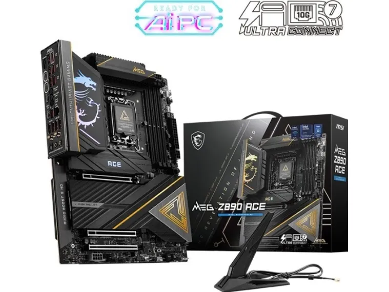 MSI MEG Z890 ACE - Hovedkort - ATX - LGA1851-sokkel - Z890 Chipset - USB-C 3.2 Gen 2x2, USB 3.2 Gen 1, USB 3.2 Gen 2, USB4, USB-C 3.2 Gen2 - 10 Gigabit LAN, Wi-Fi 7, Bluetooth - innbygd grafikk (CPU kreves) - HD-lyd (8-kanalers)