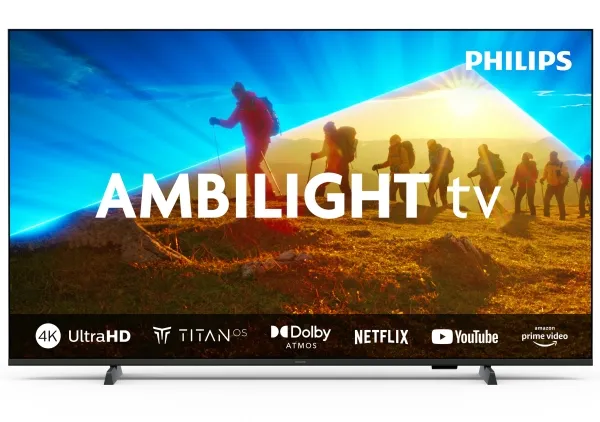 Discover the Philips 43PUS8009, a smart TV designed to elevate your viewing experience with its stunning 43-inch 4K UHD display, enhanced by the innovative Ambilight 3-sided technology. This TV not only delivers exceptional picture quality through support for HDR10, HDR10+, and HLG formats but also offers an immersive audio experience with Dolby Atmos and DTS:X. The inclusion of AI-enhanced audio technologies ensures that every sound is crystal clear, from the subtlest dialogue to the most dynamic soundscapes.