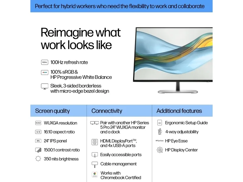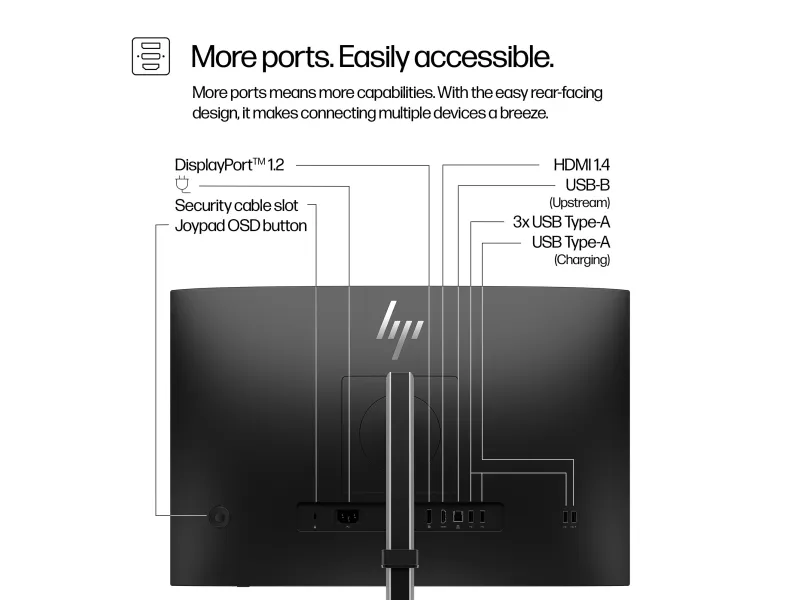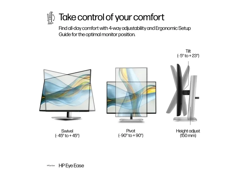 Flicker Free-teknologi, 3 Side Borderless Design, Low Blue Light-teknologi, 8-biters (6-biters + FRC) Color Depth, HP Eye Ease