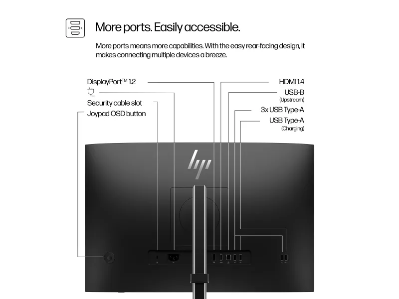 HDMI (HDCP) DisplayPort 1.2 (HDCP) 4 x USB 3.2 Gen 1 (1 opplading) USB-B