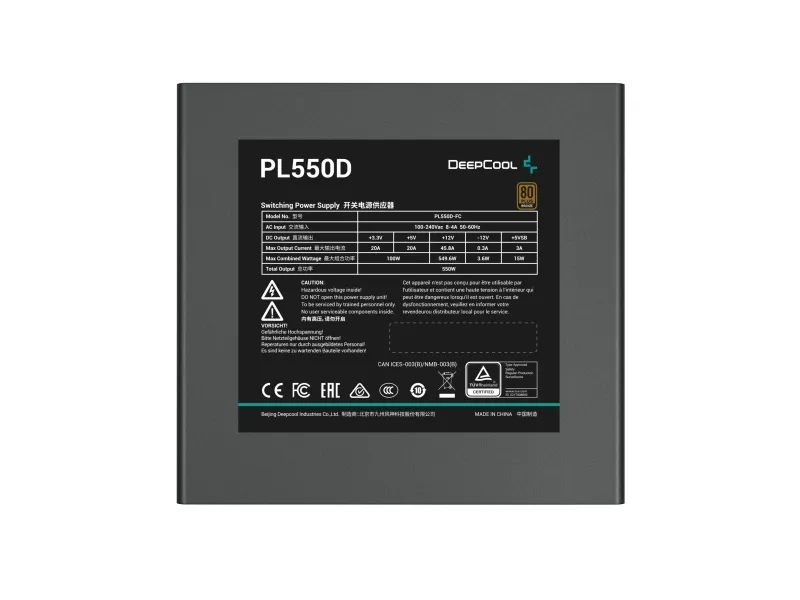 The Deepcool PL550D power supply delivers reliable performance with a powerful output of 550 W. Designed with a modular cable management system, this power supply features multiple detachable cables, allowing for optimized installation and neat cable routing. With an efficiency rating of 80 PLUS Bronze, it operates efficiently, ensuring minimal energy waste and steady power delivery. Equipped with a 120 mm fan, it maintains safe temperatures even under high load conditions while incorporating safety features such as overheat, overcurrent, and short-circuit protections. Compliant with various industry standards, the PL550D is a solid choice for building or upgrading computer systems, ensuring stability and durability over time.