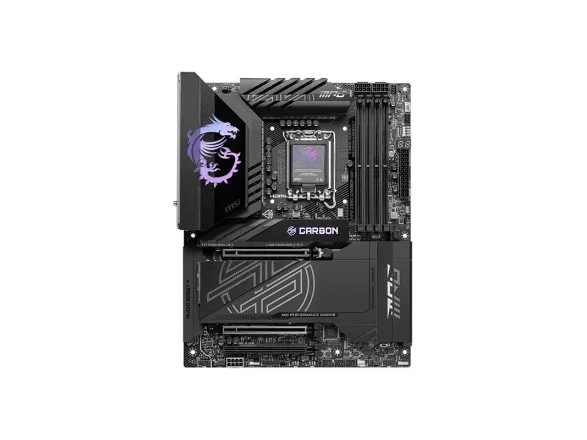 The MSI MPG Z890 Carbon WiFi motherboard is designed to provide performance with its advanced features. Engineered with the Intel Z890 chipset, this ATX motherboard supports Intel Core Ultra processors, delivering processing power. With support for DDR5 SDRAM and speeds of up to 4600 MHz, this motherboard is built for performance enthusiasts and gamers alike, offering enhanced memory bandwidth and efficiency. Equipped with multiple M.2 slots and a range of connectivity options, including USB4 and Thunderbolt 4, the MPG Z890 offers compatibility for storage and peripherals.