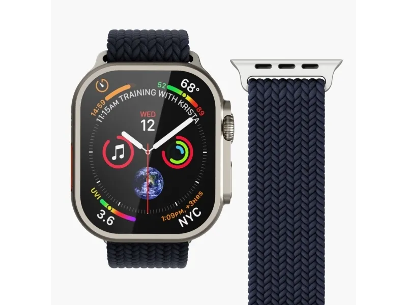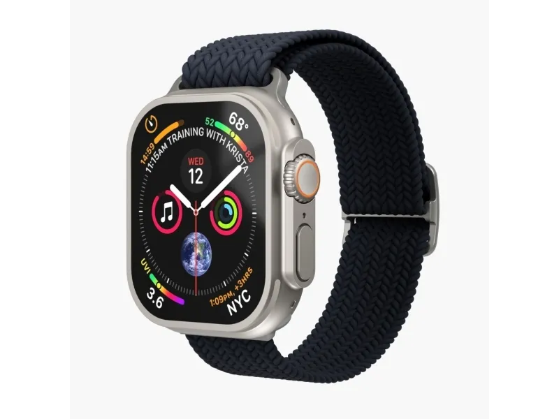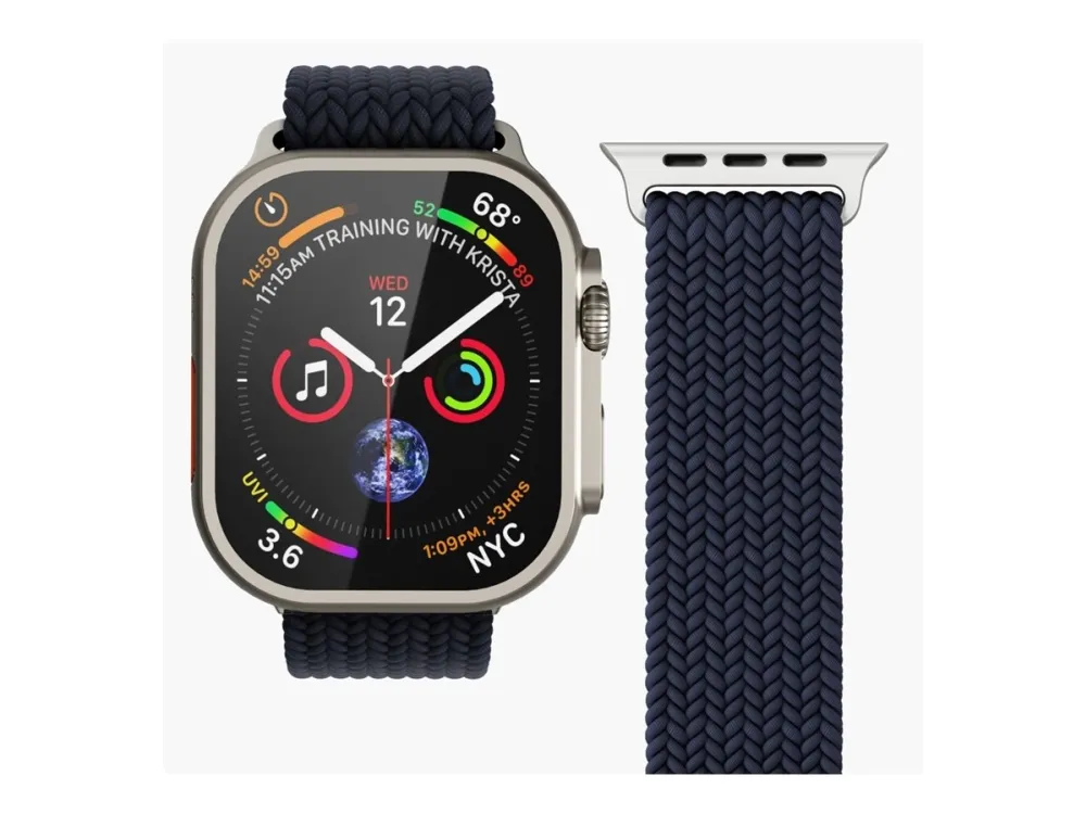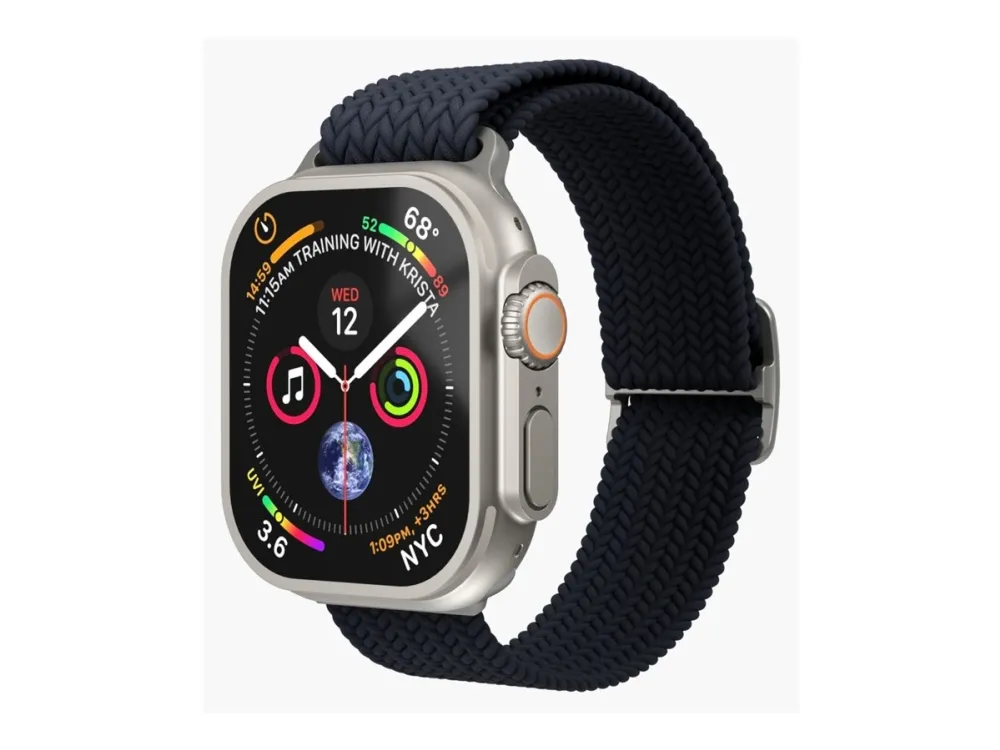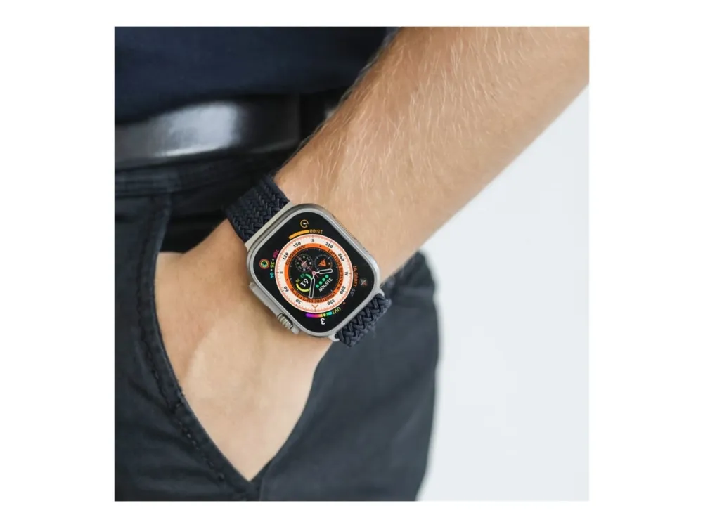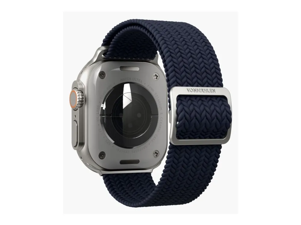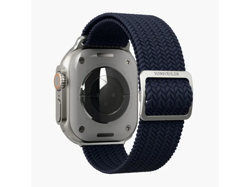 The Vonmählen watch loop is designed for compatibility with various smart watch case sizes, including 40 mm, 41 mm, and 42 mm. Crafted from braided nylon, this watch loop offers style and functionality. It is sweat-resistant and water-resistant, suitable for everyday wear, whether at the gym or outdoors. Additionally, this product is made from 32% recycled materials, providing an eco-friendly option for consumers who care about the environment.