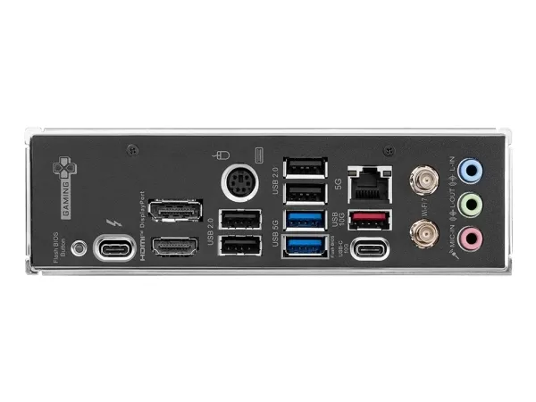 2 x USB 3.2 Gen 1 1 x USB 3.2 Gen 2 1 x USB-C 3.2 Gen 2 4 x USB 2.0 1 x HDMI 1 x LAN (5Gigabit Ethernet) 1 x lydutlinje - minijakk 1 x mikrofon - minijakk 1 x lydinnlinje - minijakk 2 x antenne 1 x PS/2-tastatur / -mus