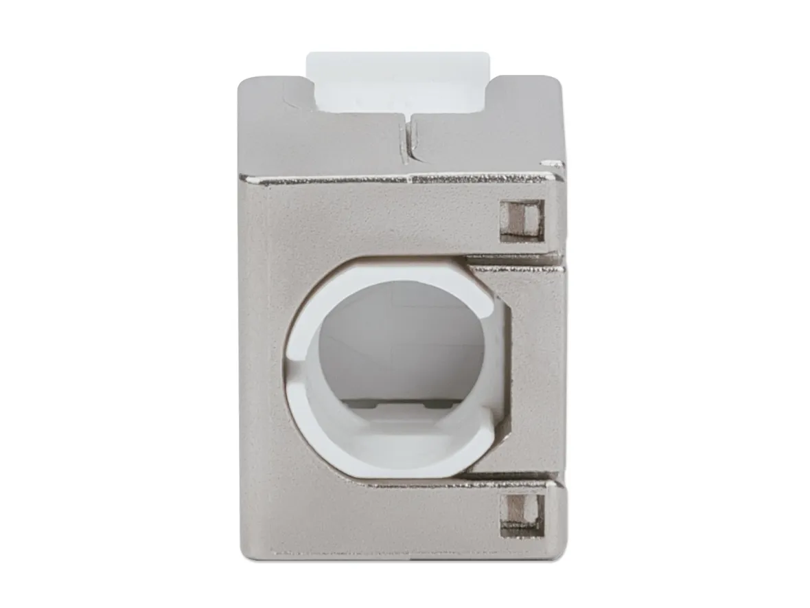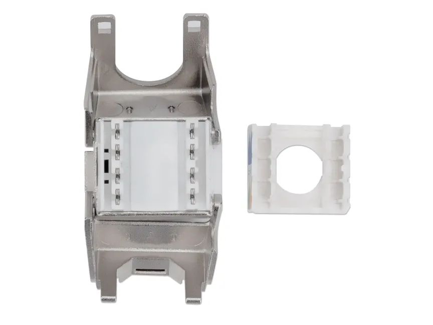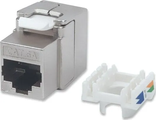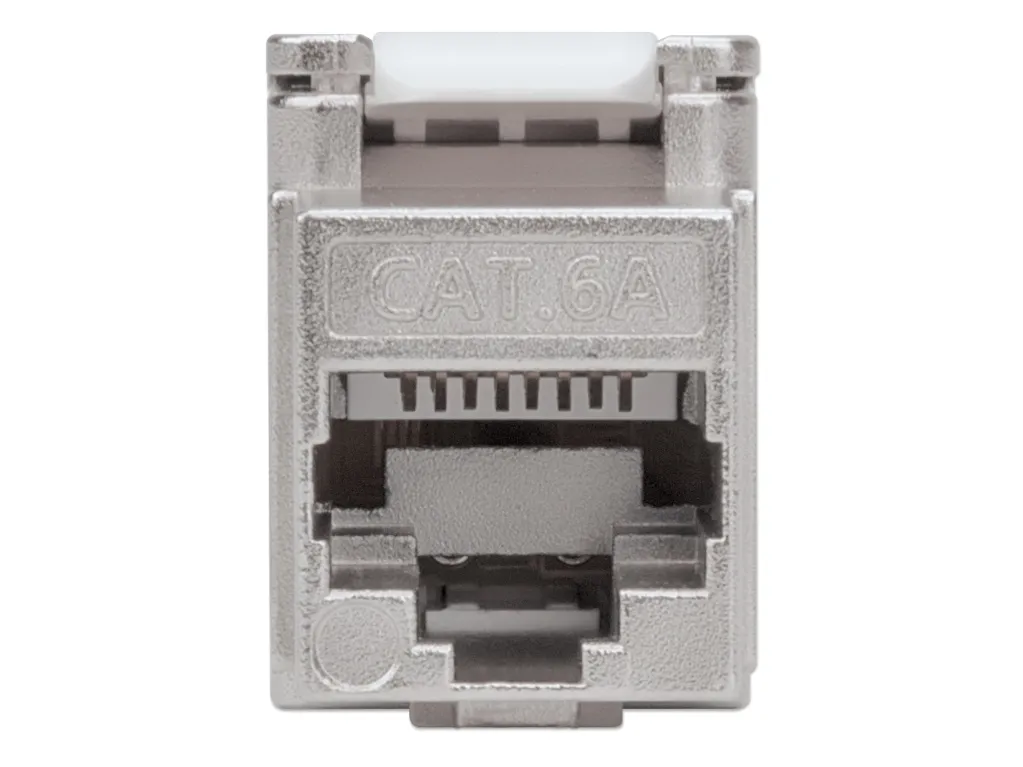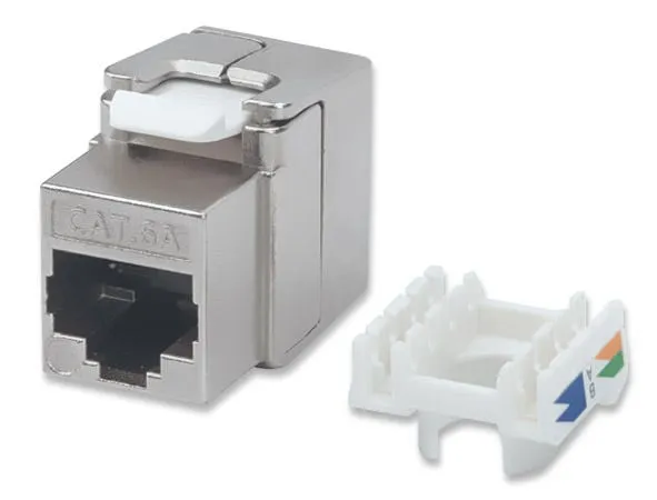 With a zinc die-cast housing and full shielding, the Intellinet Cat6a Keystone Jack ensures premium quality connections for 10-Gigabit Ethernet networks. Its tool-less design and compatibility with 110 and Krone Punch-Down Tools make termination fast and easy.Intellinet 771986. Construction type: Flat, Product colour: Silver, Connector 1: IDC. Width: 16 mm, Depth: 38.1 mm, Height: 22.8 mm