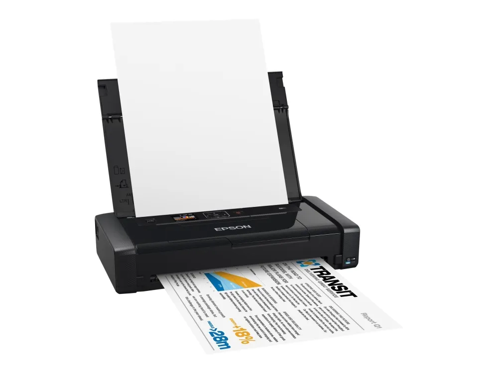 WF-100W skriver ut A4-dokumenter som fakturaer, kvitteringer og billetter fra hvor som helst, enten det er fra et kjøretøy på farten eller hos klienten. Den kan lades via USB, inkludert en USB biladapter eller den vedlagte AC-adapteren. WF-100W er den eneste portable skriveren som er kompatibel med Wi-Fi og Wi-Fi direct-tilkobling for utskrift på farten. Teknologien er kompatibel med Epson Connect, inkludert iPrint og Email Print. Den er også kompatibel med Apple AirPrint, Google Cloud Print.