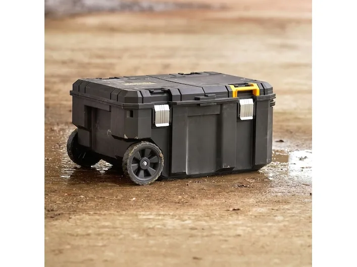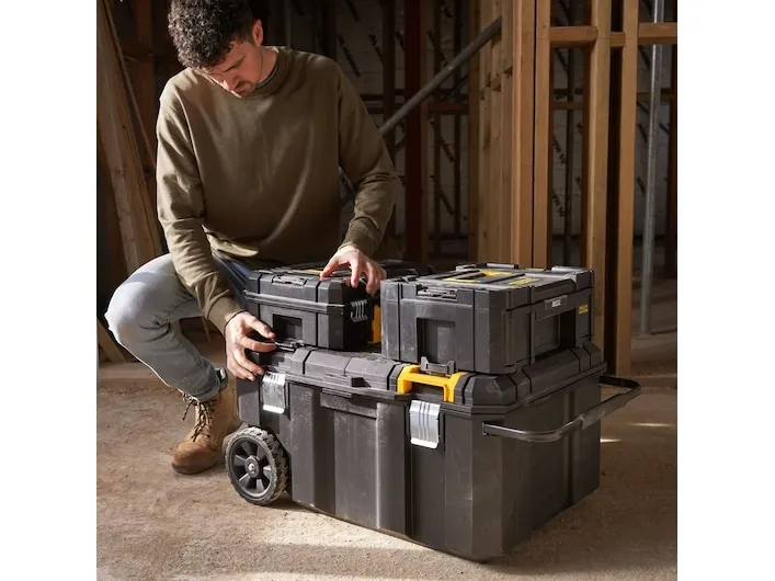 Product Overview The STANLEY® FATMAX® PRO-STACK™ 113 Litre Quick Access Job Chest (66.6 x 45.8 x 34cm) is part of the STANLEY® FATMAX® PRO-STACK™ range which is a customisable, interlocking, stackable and portable storage system – offering real versatility – whatever the task. The Job Chest is designed for storing larg power tools and features a quick access lid, which enables half of the job chest to be opened to access tools, without removing other PRO-STACK™ modules. It also provides a convenient workstation by stacking multiple PRO-STACK™ modules side by side. The Job Chest is IP54 rated for resistance to dust and water spray and is complete with a telescopic pull handle for easy transportation, anti-rust metal latches for durability and a padlock eye for safety.Stanley FATMAX FMST17870-1. Product colour: Black. Width: 666 mm, Depth: 458 mm, Height: 340 mm