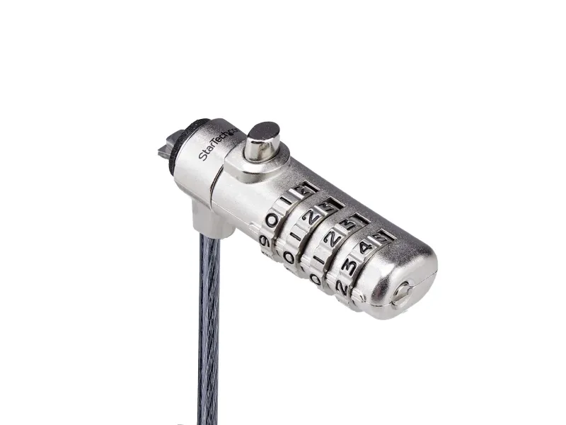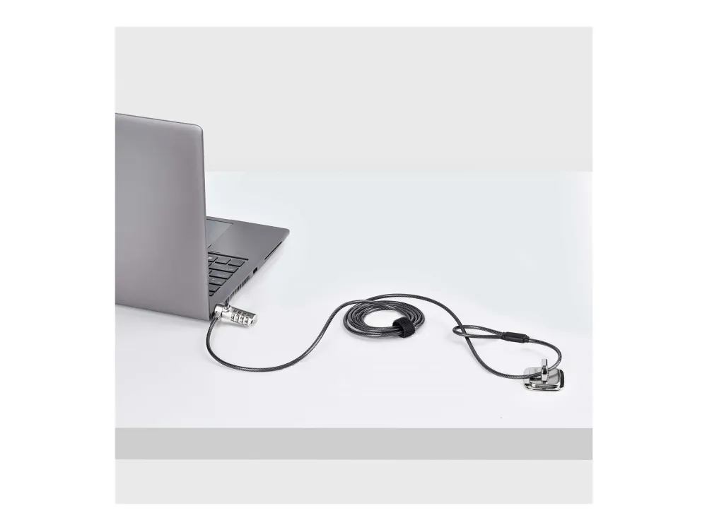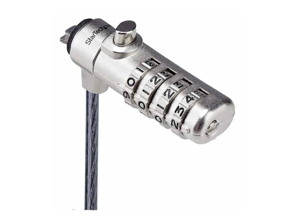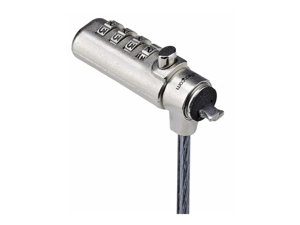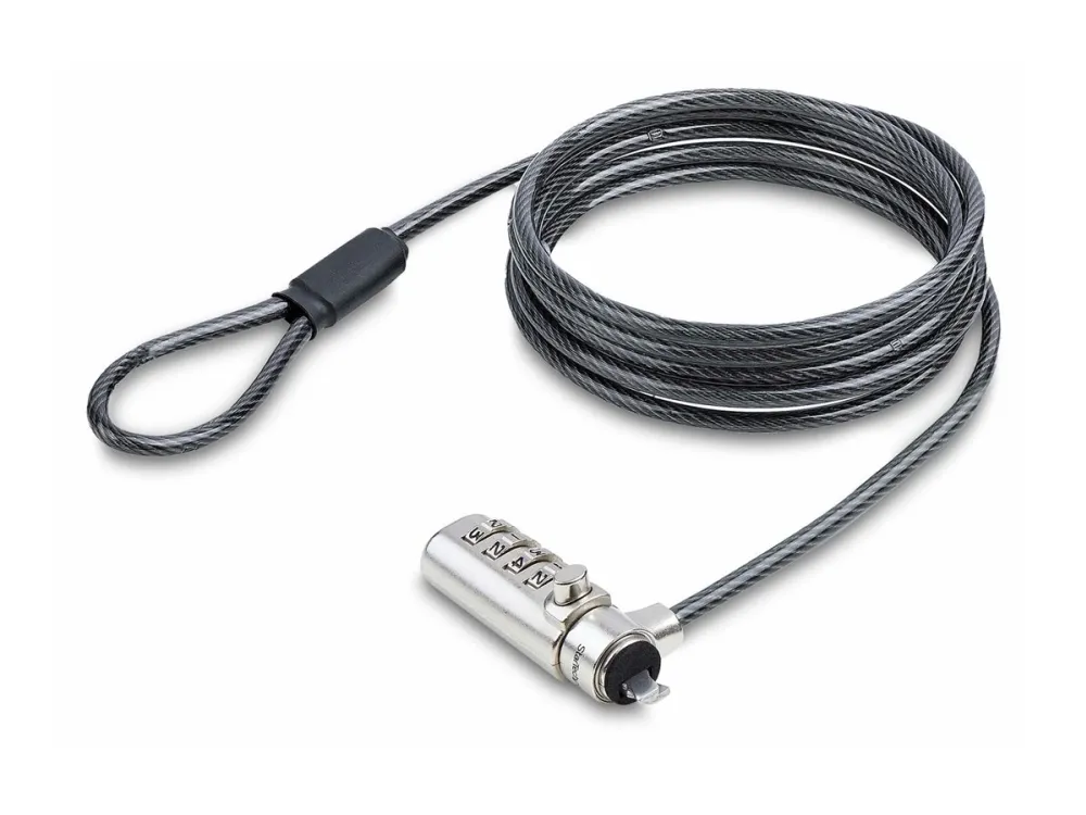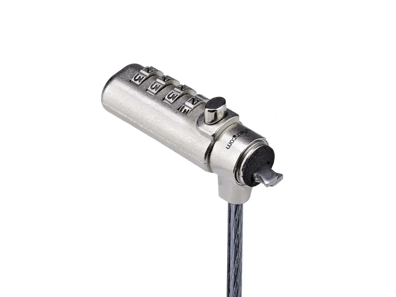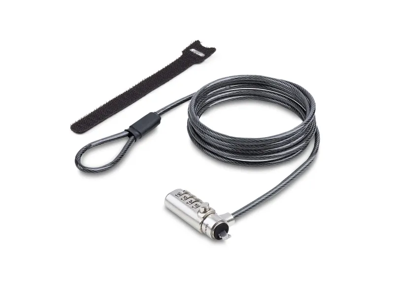 The Slim Lock Noble Wedge Slot Compatible, 6.6 ft Locking Cable from StarTech.com provides effective security for your notebook. Crafted from steel, this security cable lock ensures durability, making it a reliable choice for safeguarding your device. Featuring anti-theft protection and cut-resistant design, it helps prevent theft while offering ease of use with a combination lock method. Its 360° rotation allows for flexibility in positioning, making it convenient to secure your device in different settings.
