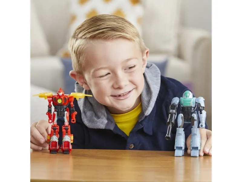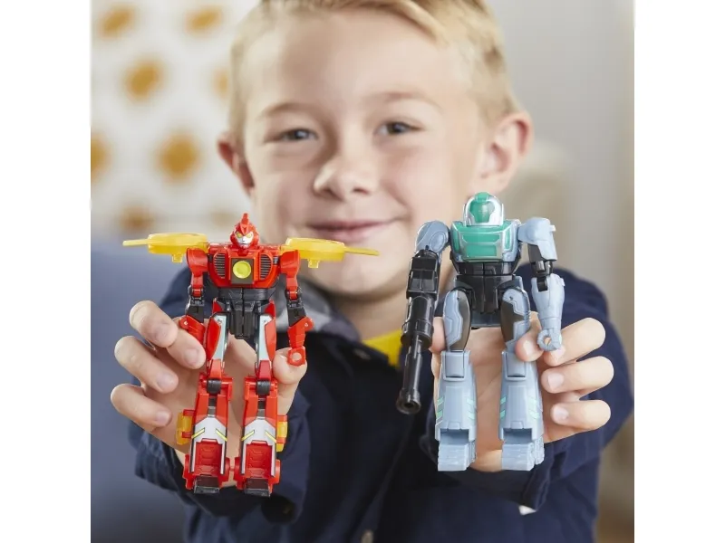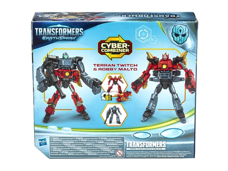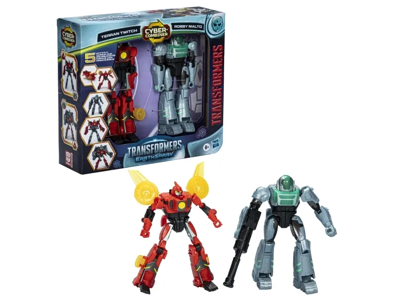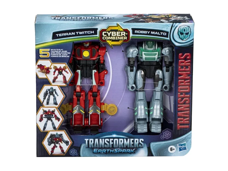 There are so many ways to play with the Transformers: EarthSpark Cyber-Combiner set! Convert the Terran Twitch figure from robot mode to drone mode in 9 steps, imagine Robby Malto in his Cyber-Suit rushing into battle, or combine the figures in 2 different ways to make a super-powered Twitch or Robby! This Transformers toy also comes an attachable blaster accessory for storytelling power. Look for additional Cyber-Combiner action figure sets (sold separately, subject to availability) to create additional awesome combinations! Transformers toys like the Cyber-Combiner make cool gifts for boys and girls ages 6 and up. Transformers and all related characters are trademarks of Hasbro.