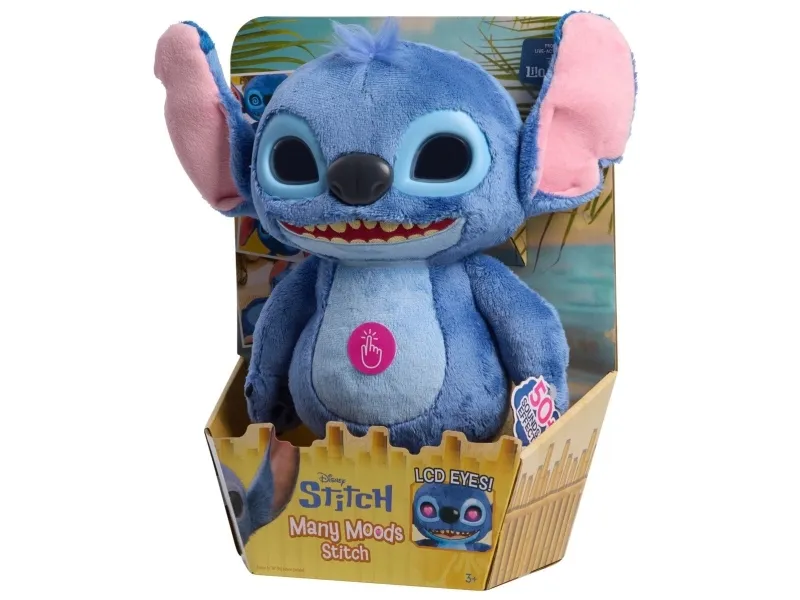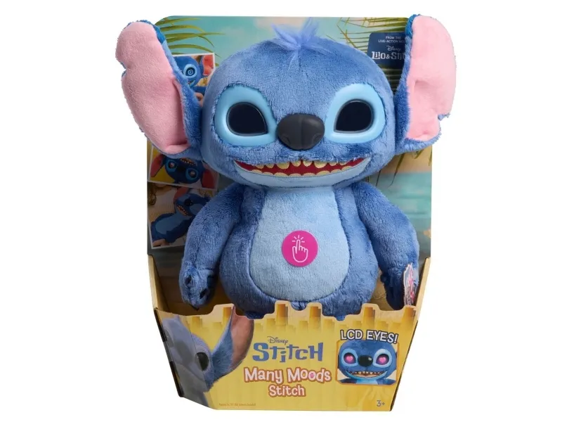 Just Play Disney Stitch - Many Moods Stitch. Product type: Character, Recommended age (min): 3 yr(s), Character: Stitch, Interactive, Sounding. Battery type: AA