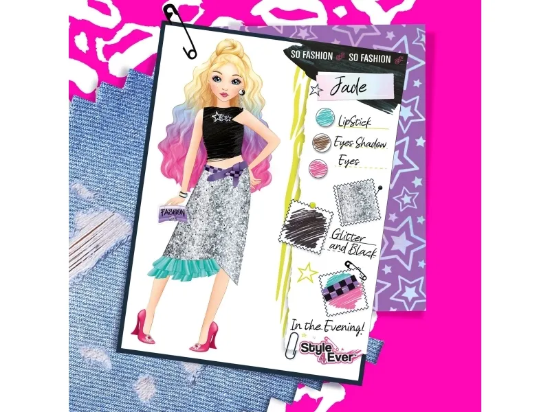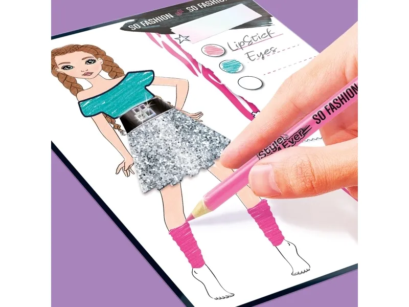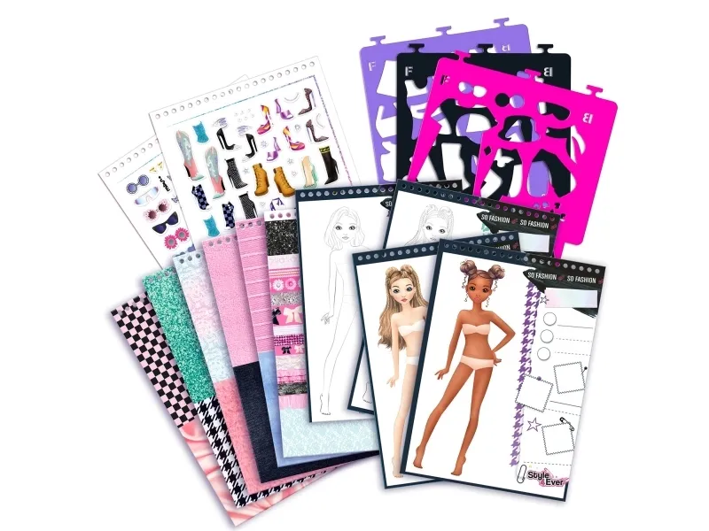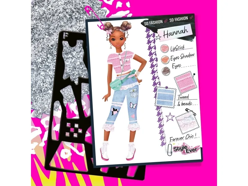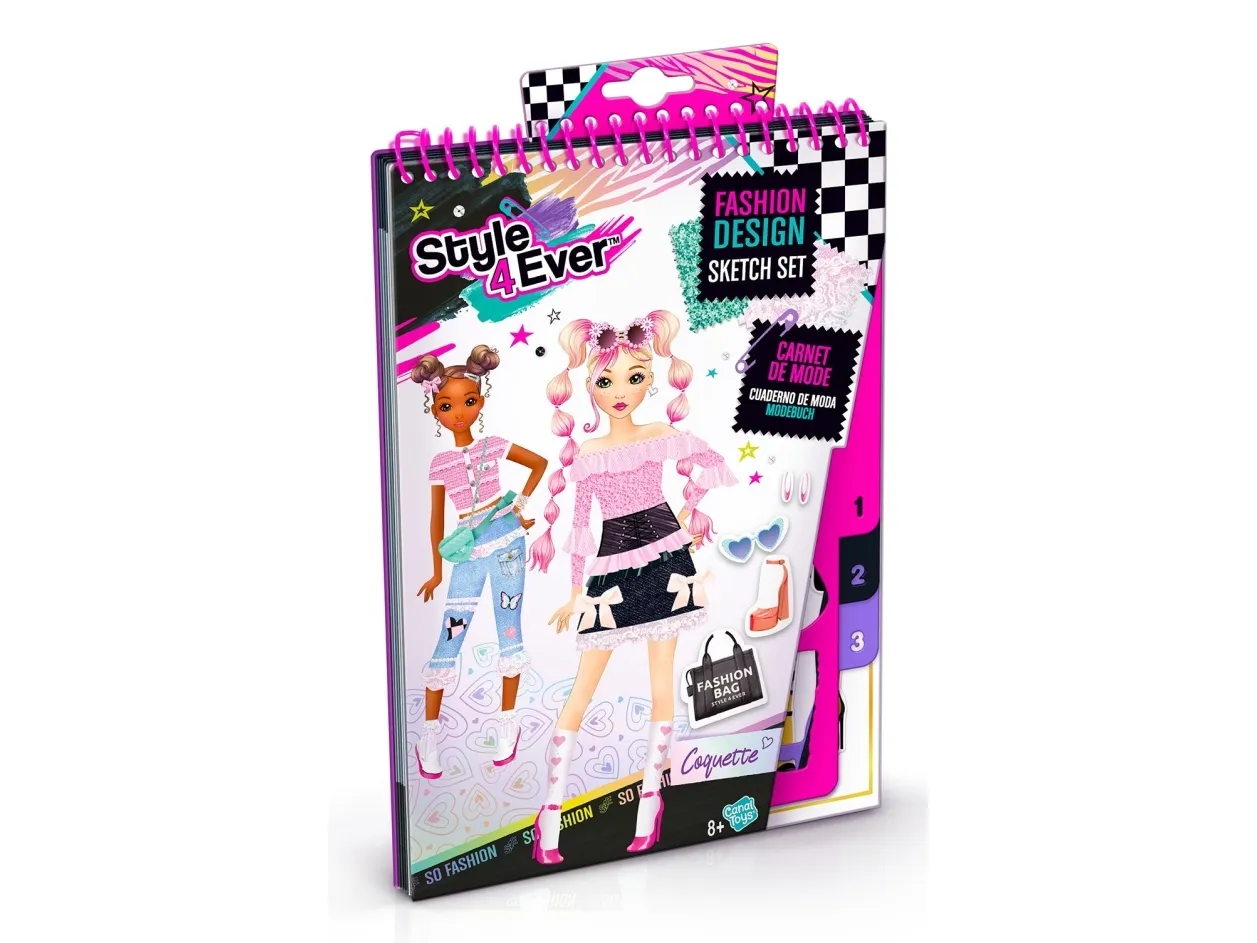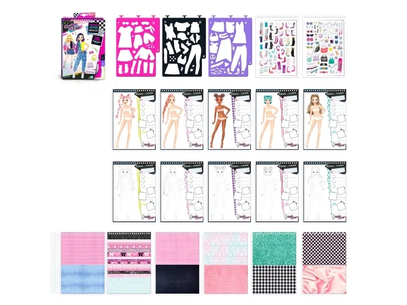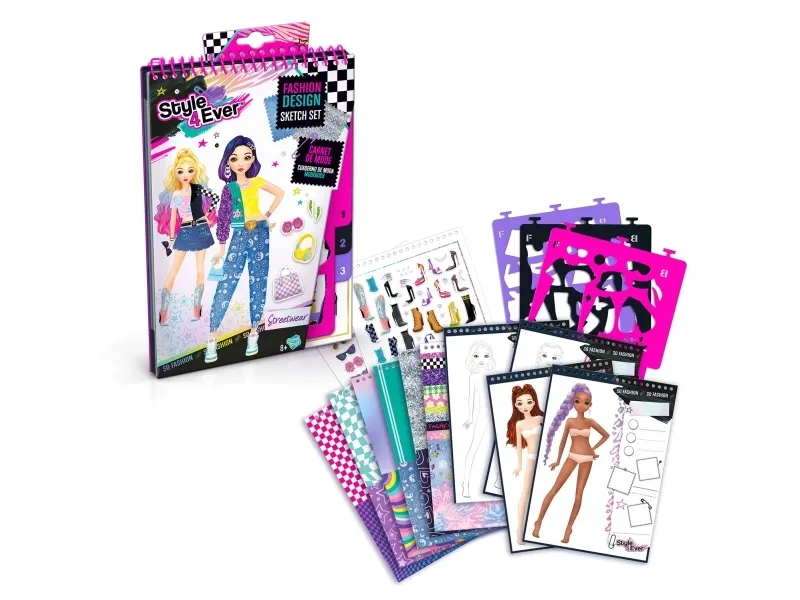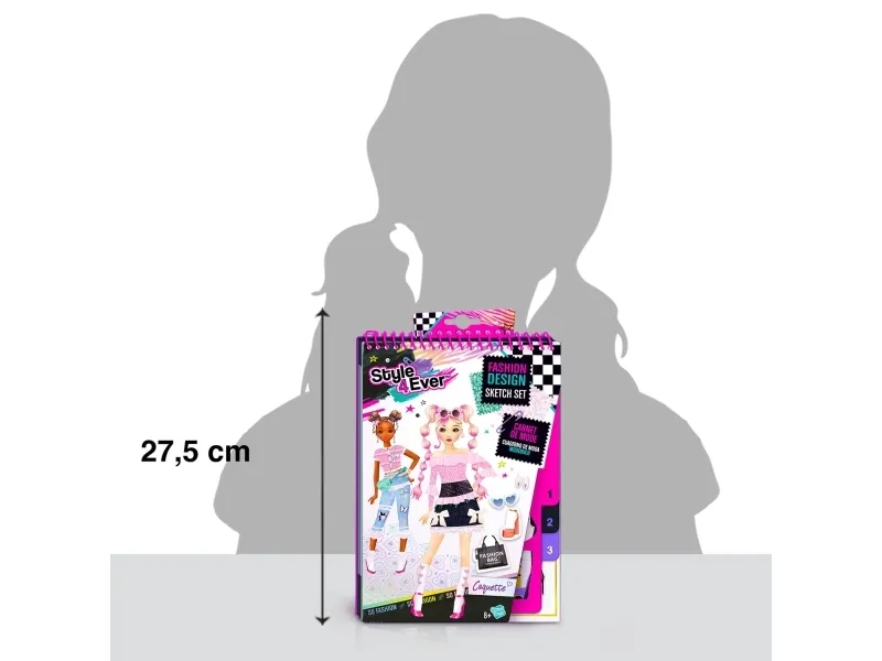 Vis frem din stylingtalent og skap din egen kolleksjon med dette Fashion Sketchbook! Tilbehøret som følger med, gjør det enkelt å lage mange antrekk. Ta det med deg overalt! Inkluderer: - 1 skissebok med spiral - 20 skissesider - 3 maler - 2 klistremerkeark - 6 papirark