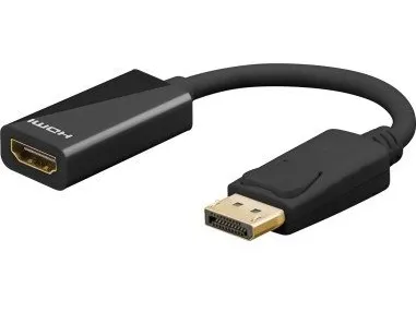 DisplayPort™ stik > HDMI™ socket (type A) Goobay-adapter til overførsel af HD-video og lydsignaler fra computeren til en skærm signaltransmission med opløsninger på op til 8K @ 60 Hz DisplayPort™-til-HDMI™-adapter som en enkel løsning til tilføjelse af en ekstern skærm (Plug & Play) Guldbelagte kontakter garanterer fejlfri signaloverførsel, klar lyd og knivskarp video- og billedkvalitet. DisplayPort™-stik med mekanisk stiklås for et sikkert greb uden løse kontakter Fleksibel PVC-kabelkappe Tilslutningskabel understøtter DisplayPort™ 1.2 (nedadkompatibelt med DisplayPort™).