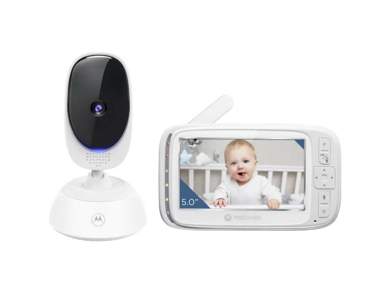 5.0 video-babyalarm Motorola VM50G har en 5 -tommer skærm og et kamera med fjernbetjent panorering, vipning og digital zoom samt nattesyn. Tal med dine små med to-vejs-opkald, og ved dig, når dit værelse er for varmt eller for koldt med rumtemperatursovervågning.