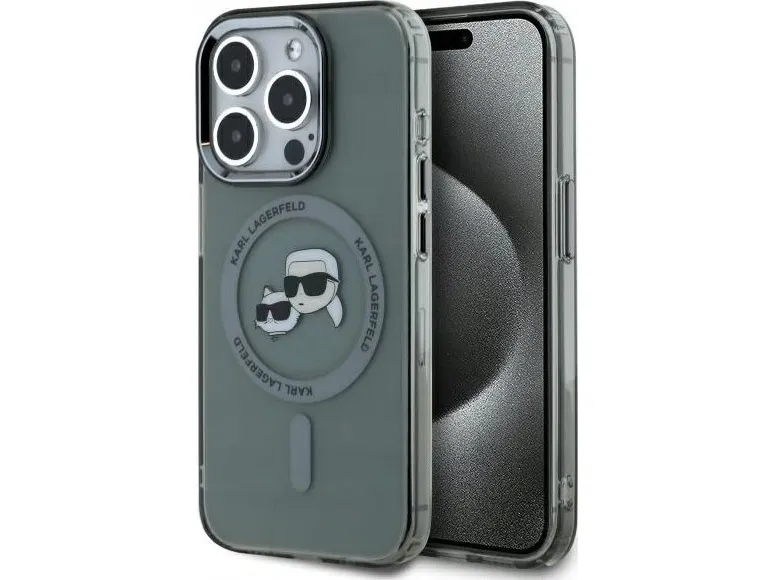 Deklas Karl Lagerfeld IML K&CH Heads Metal Frame MagSafe Case for iPhone 15 Pro Max Juodas