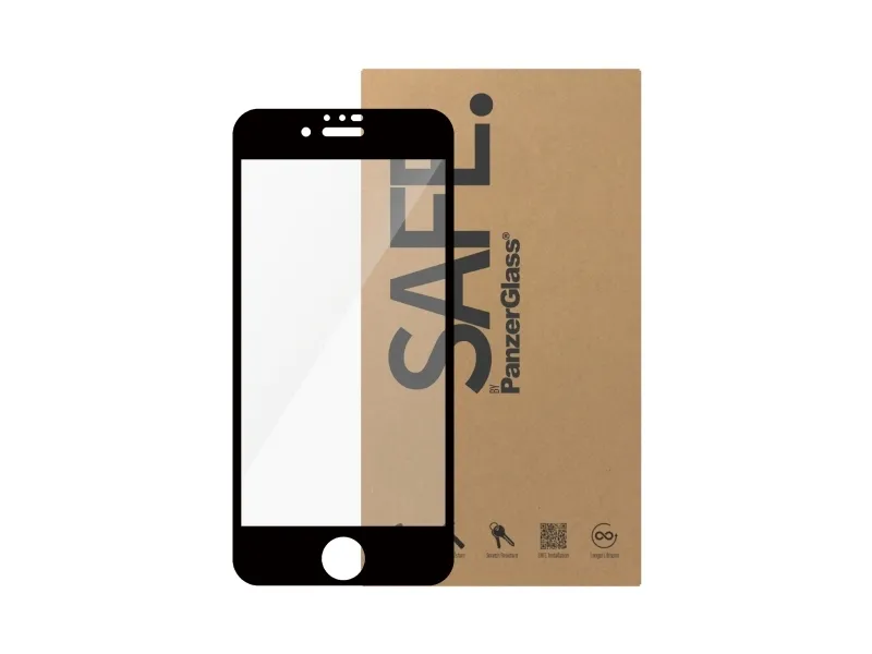 SAFE. by PanzerGlass - Skjermbeskyttelse for mobiltelefon - ultrabred passform - glass - 4.7" - rammefarge svart (en pakke 50) - for Apple iPhone 6, 6s, 7, 8, SE (2nd generation), SE (3rd generation)