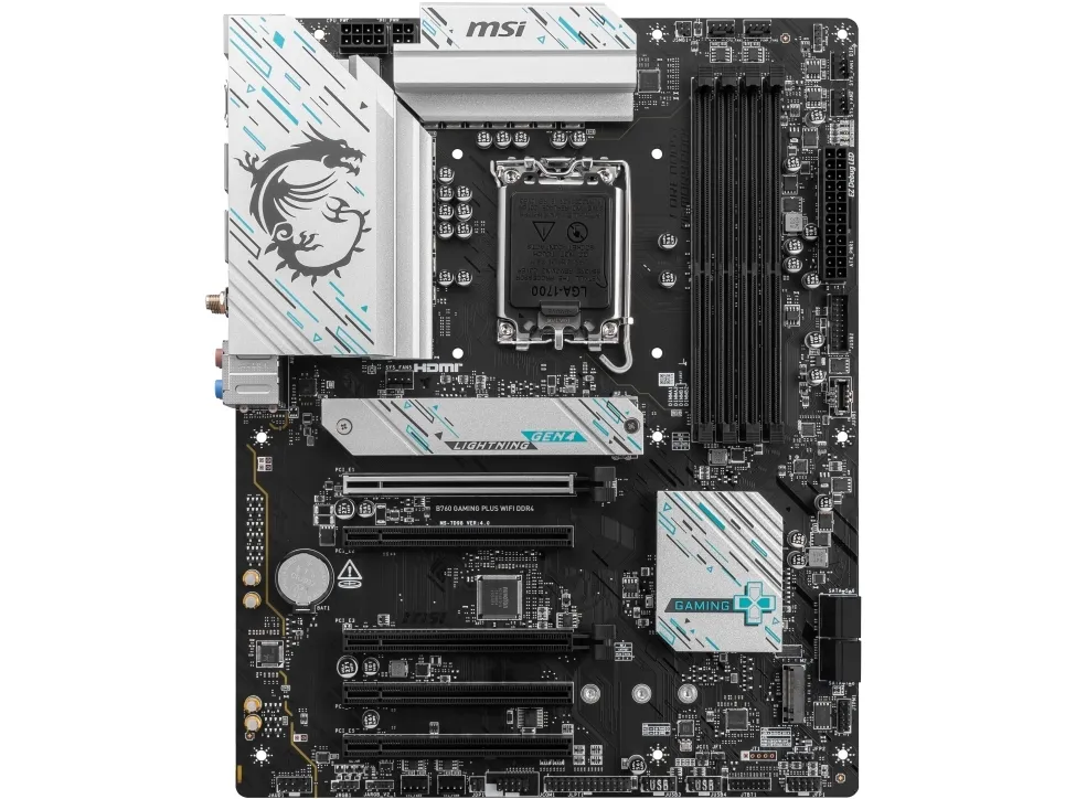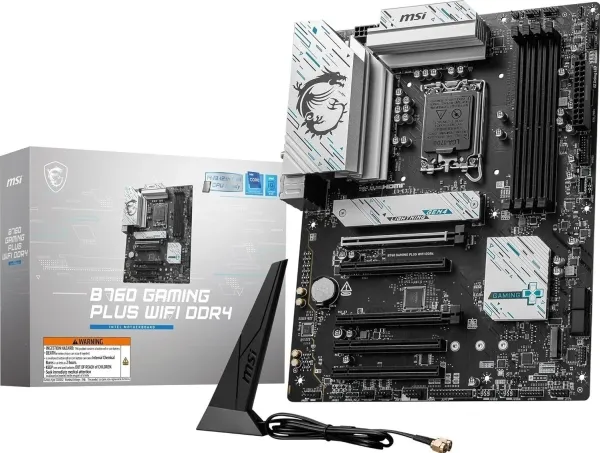 Experience the next level of gaming and productivity with the MSI B760 GAMING PLUS WIFI DDR4 motherboard. Designed for enthusiasts, it supports the 12th, 13th, and 14th Generation Intel Core processors, ensuring advanced performance for any task. High-definition audio with Realtek ALC897 codec, combined with an 8-channel audio system, brings your games and media to life with crystal-clear sound. The motherboard is built for future-proofing, with PCIe 4.0 x16 slots for high-speed components and DDR4 support for up to 5333 MHz (O.C.), allowing you to push your system to its limits. Networking is a breeze with 2.5 Gigabit Ethernet and Wi-Fi 6E, offering fast and reliable connections for online gaming and streaming. Additionally, a variety of USB ports, including USB-C 3.2 Gen 2, ensures compatibility with a wide range of devices. With MSI's commitment to quality, the B760 GAMING PLUS WIFI DDR4 is the perfect foundation for building a powerful PC.