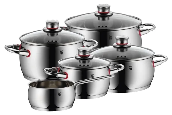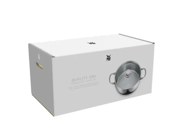 WMF Quality One 07.7455.6380. Type: Boiling set, Product colour: Stainless steel, Material: Stainless steel. Saucepan capacity: 1.7 L, Saucepan 2 capacity: 3.3 L, Saucepan 3 capacity: 6.8 L. Package volume: 48593 cm³. Number of products included: 9 pc(s), Number of saucepans: 5 pc(s). Products per intermodal container (20ft): 576 pc(s), Products per intermodal container (40ft): 1216 pc(s), Products per pallet layer: 4 pc(s)