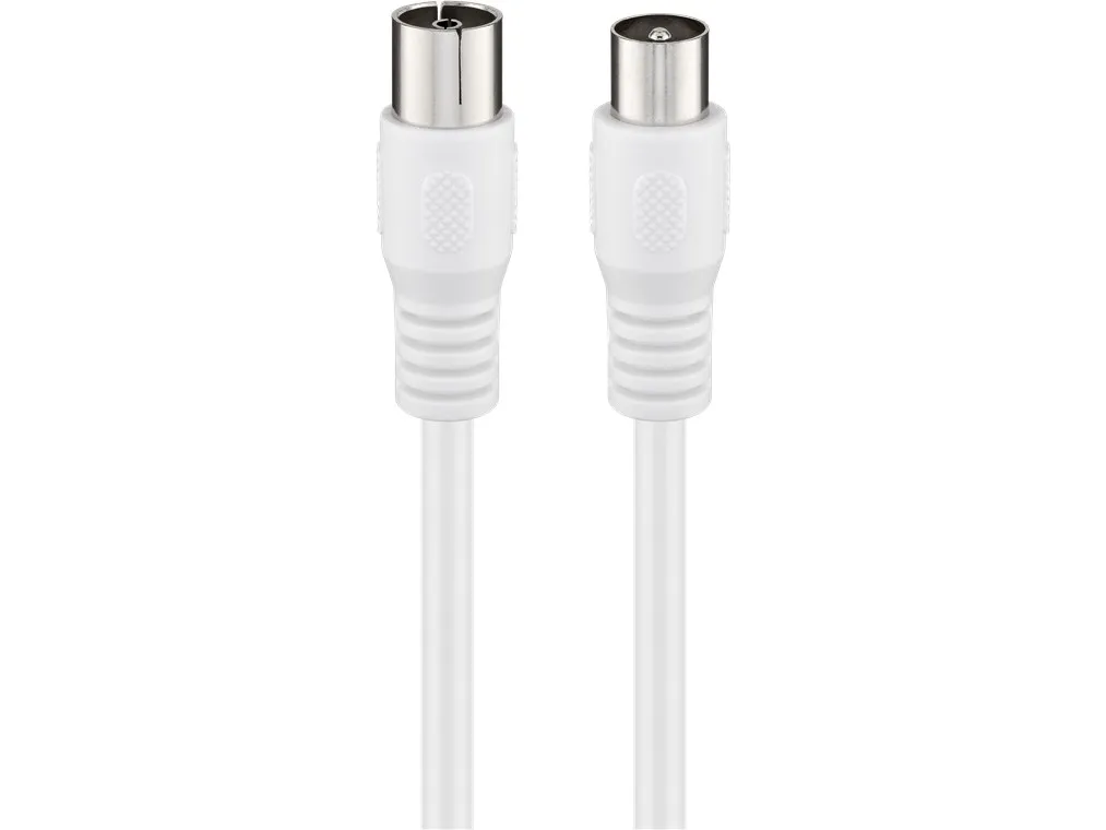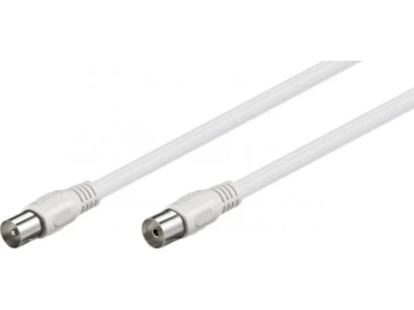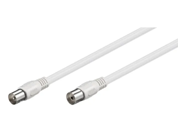koaksial-stik > koaksial-hunstik (fuldt afskærmet) Kabellængde 3-foldet afskærmet satellitkabel for interferensfri transmission Fuldt afskærmet stik støbt på begge sider for at beskytte mod støv, snavs og mekanisk belastning Forniklede, præcisionspassende kontakter Til tilslutning af enheder med en koaksialforbindelse som f. eks. tv-apparater, modtagere og radioer