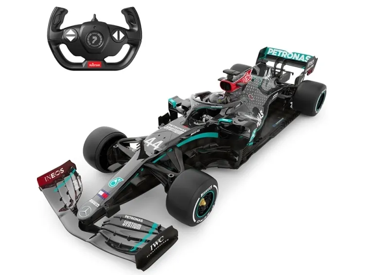 Hastighet 7-8 km/t. Rekkevidde 20-30 meter. Denne Mercedes AMG F1 W11-raceren har et autentisk design, et sprøytestøpt karosseri og et uavhengig fjæringssystem. Bilen kan kjøre fremover, bakover og kan svinge til venstre og høyre. Et sett med klistremerker til karosseriet er inkludert. Fra 6 år . - størrelse: 47,6 x 17,7 x 9,2 cm, målestokk 1:12 - frekvens: 2,4GHz - fjernkontrollen krever 2 x AA-batterier (ikke inkludert) - Bilen krever 5 x AA-batterier - hastighet: opptil 7-8 km/t - rekkevidde: opptil 20-30 meter