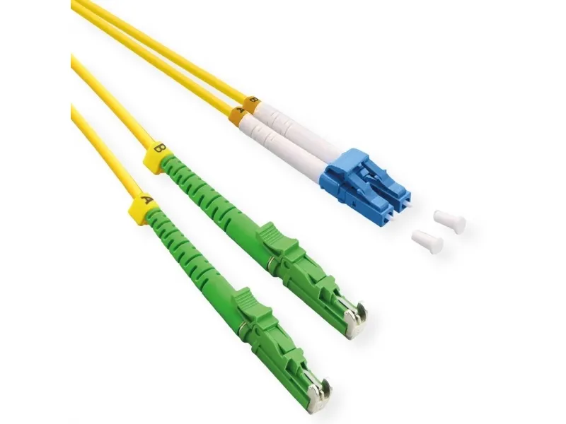 ROLINE lyslederkabel duplex 9/125µm, LSH APC / LC UPC, LSOH, gul, 7,5 m. Førsteklasses glasfiberkabel med den højst beskyttede, sikrede og APC polerede LSH-tilslutning på den ene side og UPC-poleret LC-stik på den anden side. Duplex-kabel med fibertype 9/125µm OS2 kabelmateriale: Kappe halogenfri og flammehæmmende, gul, fuld oplader med aramid-trækaflastning LC-stik: Stik med høj mekanisk belastningsevne, push-pull latched med vridningssikring, UPC-slibning, keramik-ferrule LSH (E2000)-stik: Præcist udformede stik med lav returstrømdæmpning, APC-skråslibning, keramik-ferrule henvisning: Kabel fås i 0,5 m, 7,2 m, 7,2 m, 3M