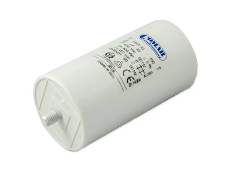 Motordriftskondensator i plastbæger MKA 40µF 450Vac FS 45x94mm M8 Motordriftskondensator i plastbeholder MKA 40µF 450Vac FS 45x94mm M8