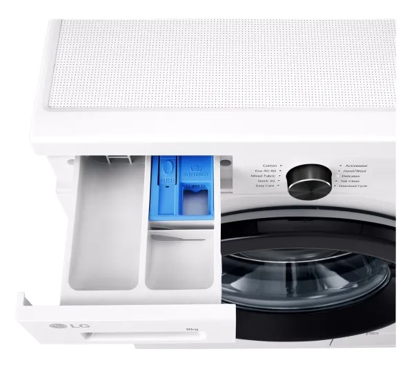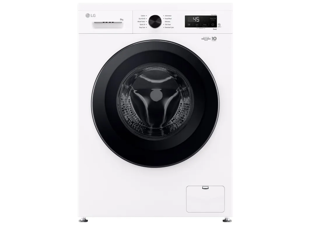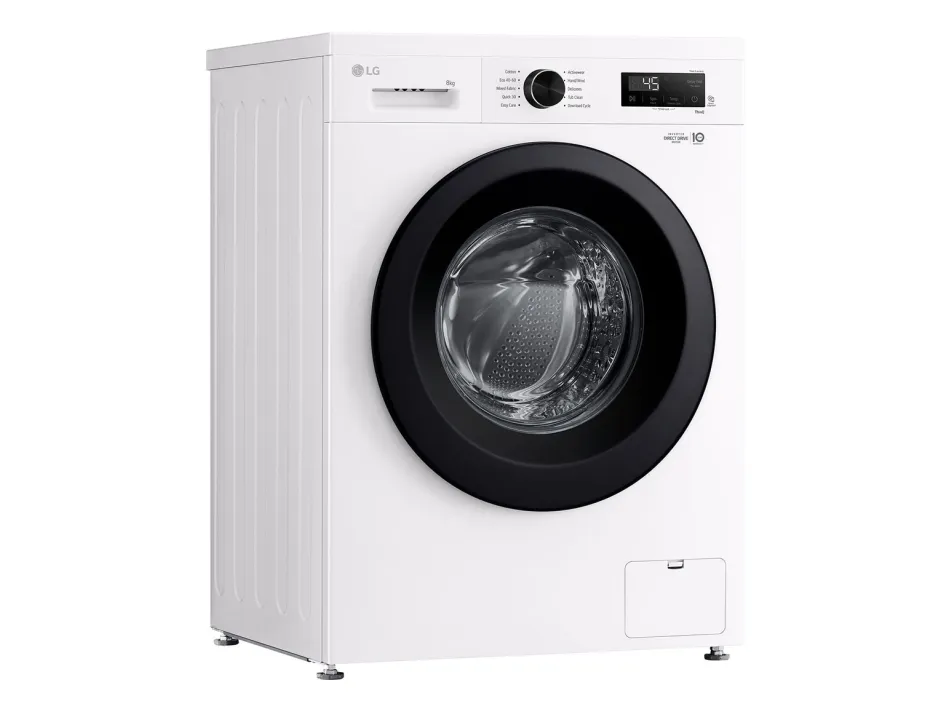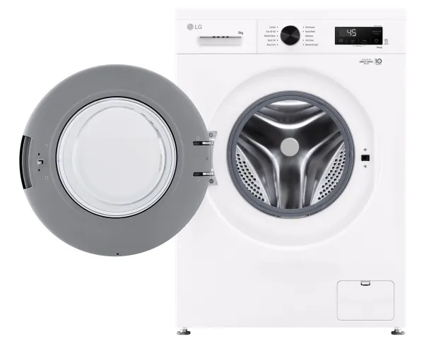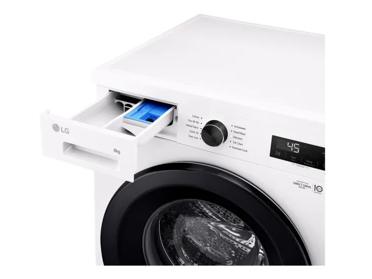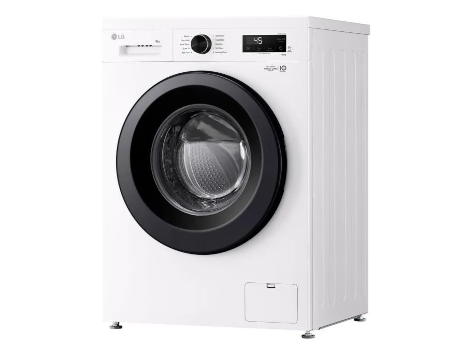 The LG F4X1008NWK washing machine combines efficiency with advanced features to offer a reliable laundry solution. With a loading capacity of 8 kg and a maximum spin speed of 1400 rpm, it effectively handles various laundry loads. The stainless steel drum ensures durability, while the Eco 40-60 washing program provides an eco-friendly option, using minimal energy and water. The machine also features steam technology to help reduce wrinkles and enhance cleaning, making it ideal for busy households. Connectivity is made seamless with IoT compatibility, allowing control via Wi-Fi and integration with intelligent assistants such as Google Assistant and Alexa. Users can monitor and manage laundry cycles through smartphones. Additional safety features like child security, door lock, and anti-foam control enhance overall user peace of mind. With Energy Class A and intelligent program optimizations like LoadSense and 6 Motion, this washing machine is designed to be efficient and user-friendly.