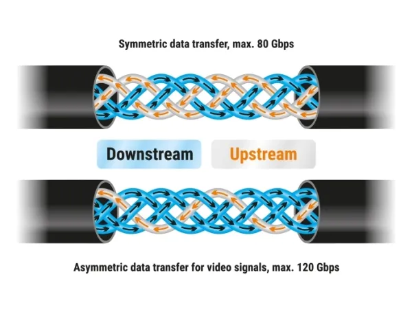 8 K 120 Hz (7680 x 4320) støtte, USB Power Delivery (240 W), støtte for Power Delivery 3,1, E-marker, up to 80 Gbps data transfer rate, 16 K 60 Hz (15 360x8640) støtte, HDCP-samsvar, toretnings, HDR10-støtte, utvidet strømområde (EPR)