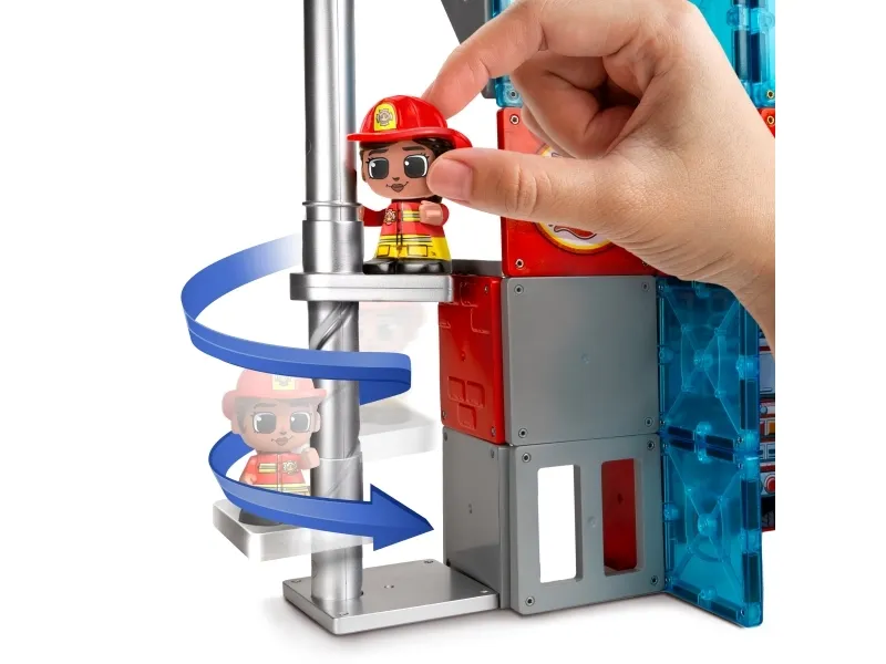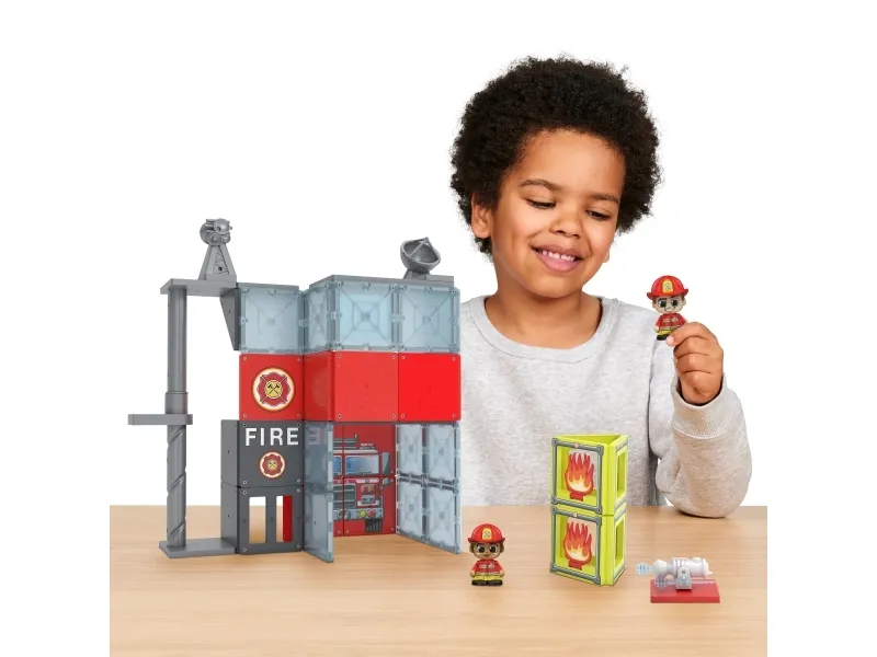 TILE TOWN Brandstation, Magnetisk Byggesæt med 46 dele. Byg og skab en brandstation ved hjælp af interaktive action brikker og sjove actionfigurer. Inkl. 2 brandmændsfigurer. Et STEM-legetøj. Alder 3-5+ år.