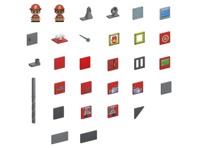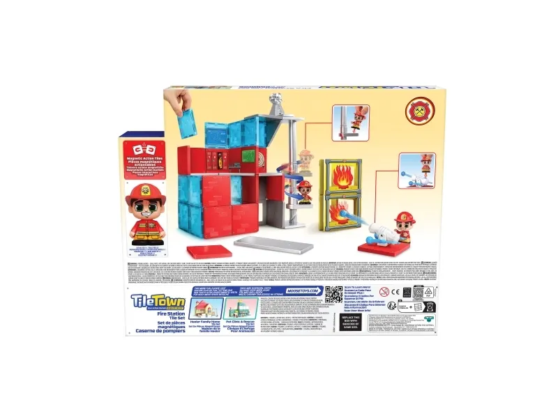 TILE TOWN Brandstation – Et sjovt Magnetisk Byggesæt med 46 dele og tilbehør. Bliv en del af Tile Town Brandkorpset og byg en brandstation fuld af action og spænding. Du kan skabe en sej brandstation, som kommer til live, ved hjælp af TILE TOWN's unikke og interaktive ACTION BRIKKER og de sjove Actionfigurer. Det 46-dele store Tile Town byggesæt kommer med 2 modige brandmandsfigurer, som vil hjælpe i alle opståede situationer. Tile Town interactive ACTION BRIKKER inkluderer en vandkanon-sprøjte med flammemål, så ilden kan slukkes og naturligvis den nødvendige spiral-brandmandsstang, så brandmændene hurtigt kan komme til hjælp aktion! Brandmændene er klar til aktion, når de aktiverer actionbrikkerne, slukker brande og glider ned ad brandmandsstangen for at redde dagen for alle som har behov for deres hjælp! Tile Towns magnetiske bygge- og legesæt med Brandstation og Brandmændsfigurer er den perfekte gave til drenge og piger i alderen 3-5+ år. Alle Tile Towns magnetiske brikker er kompatible med andre førende magnetiske byggesæt brands.