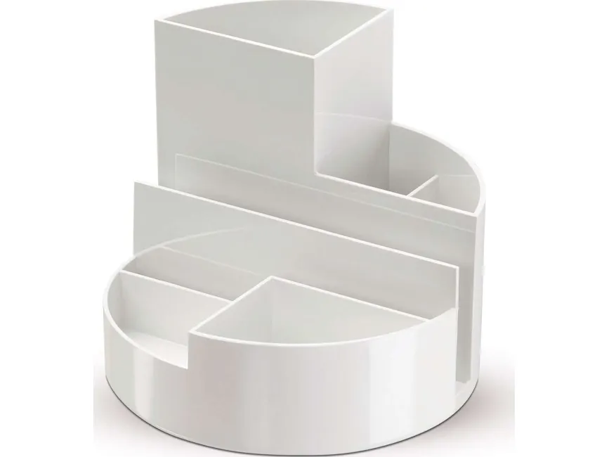 - For office use \n- For home use \n- To have utensils within reach \n- Letter and note compartments \n- Four compartments \n- One additional compartment for letters \n- Impact-resistant plastic \n- Ø 140 mm, height 125 mm \n- On request: from discontinued material stock at special prices