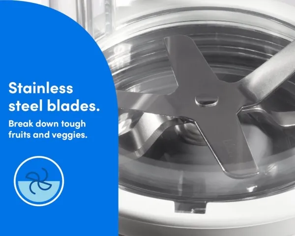 The NutriBullet Pro NB907MAW offers a blending experience with its 900 W motor. Featuring six stainless steel blades, this blender is designed to pulverize fruits, vegetables, and other ingredients to create smooth, nutritious drinks. It includes a versatile 710 ml blending cup and a 946 ml blending cup, making it easy to prepare servings for yourself or family. The practical to-go lid allows for transport, ensuring you can enjoy your blends wherever you go. All components are BPA-free, providing peace of mind for health-conscious users.