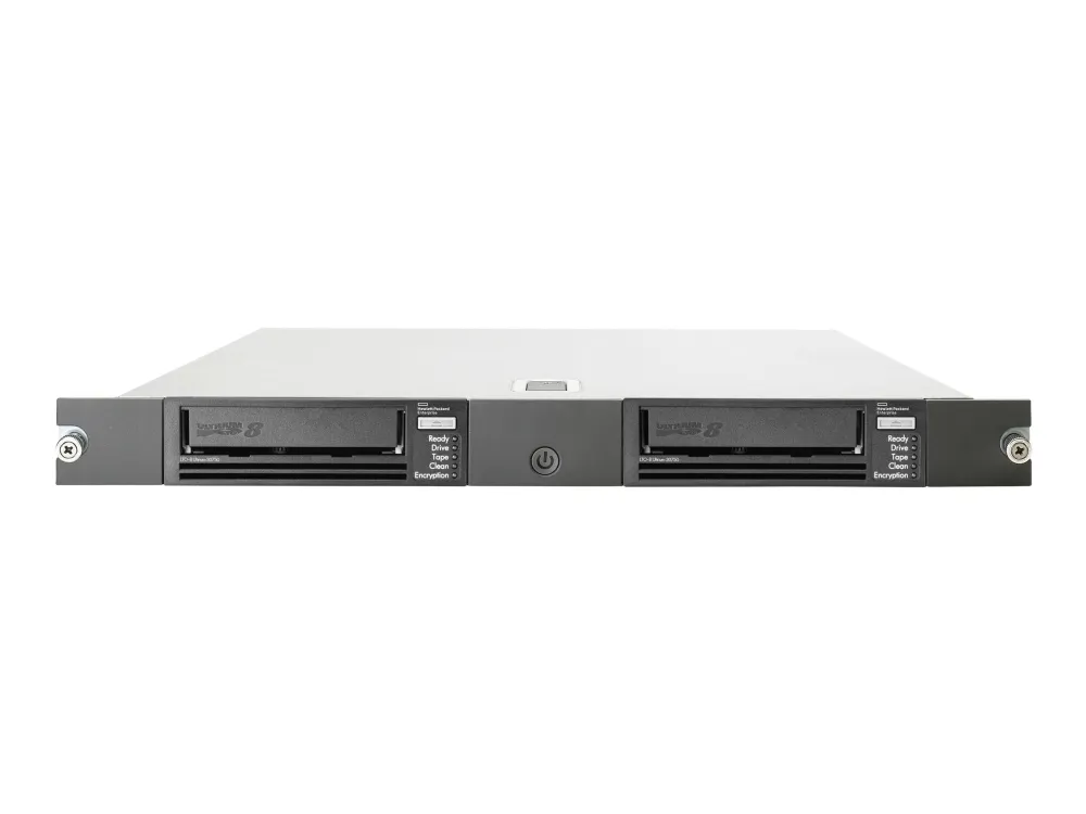 The HPE Storage Rack-mount Kits (formerly known as HPE StoreEver Rack-mount Kits) provide a high-density, rack-mountable tape drive solution for SAS backup and archiving applications in a 1U rack-mount kit. The 1U HPE StoreEver Rack-mount Kit accommodates up to two half-height internal SAS tape drives with a maximum capacity of 90 TB (2.5:1 compression) using two HPE StoreEver LTO-9 Ultrium 45000 drives.
