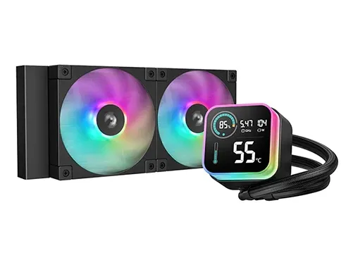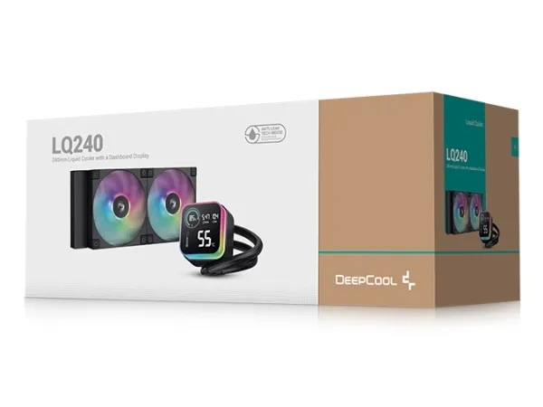 The Deepcool LQ240 is a processor liquid cooling system designed to ensure optimal cooling for your processor. This system features two 120 mm fans, providing airflow of 72.04 cfm, and operates at a variable rotation speed from 600 to 2400 rpm for customizable cooling. Enhanced with addressable RGB LED lighting and a real-time status screen, this cooler performs well while adding an aesthetic touch to your build. Built with Anti-leak Tech and a 5th generation pump, the LQ240 delivers reliable performance, while the hydro bearing provides smooth operation and minimizes noise. Compatible with a range of sockets including LGA1155, LGA1150, and AM4, this cooling solution caters to various processor setups. Included in the package is a mounting kit, making installation straightforward and hassle-free.