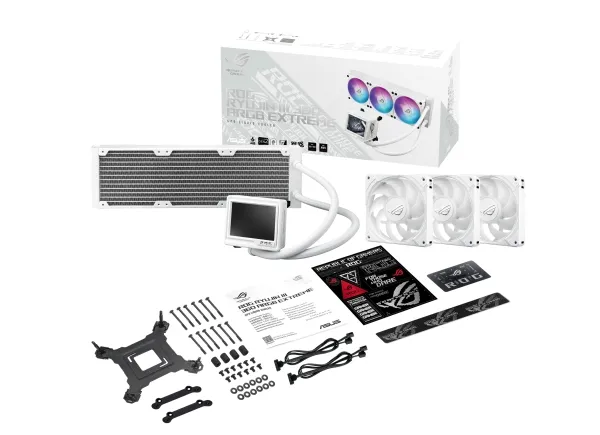 The ASUS ROG RYUJIN III White Edition redefines liquid cooling system performance with its advanced design and innovative features. This high-performance CPU water block is engineered for enthusiasts seeking exceptional cooling efficiency and aesthetic customization. With 178 micro-cooling fins and a copper cold plate, it ensures maximum heat dissipation, keeping your system running smoothly even under intense workloads. The highlight of the ROG RYUJIN III is its 3.5" Full Color LCD display, which offers customization options, from displaying vital system statistics to personalizing with unique images or animations. Compatibility is a key advantage of this cooling solution, supporting a wide array of Intel and AMD sockets, making it a versatile choice for any high-end setup. Additionally, the embedded fan enhances airflow, further improving cooling performance, while the included mounting kits for both AMD and Intel platforms ensure a hassle-free installation process. Embrace the fusion of performance and customization with the ASUS ROG RYUJIN III White Edition, the cooling solution for your gaming rig or workstation.