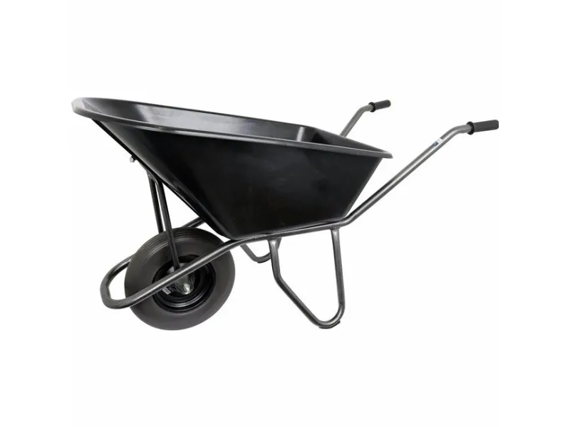 HOME It® Garden trillebør med 110 liters plastbalje og koksgråt punkterfrit dæk i størrelsen 16"×400-8 på zinkbehandlet og matlakeret stålfælg. Trillebøren er ideel til alle former for arbejde i haven og omkring huset. Trillebørens stel i Ø30 mm stålrør er zinkbehandlet og hammerton-pulverlakeret af hensyn til holdbarheden. Mål: L137×B71×H78 cm Mål, balje: L94×B61×D56 cm Belastning: maks. 100 kg