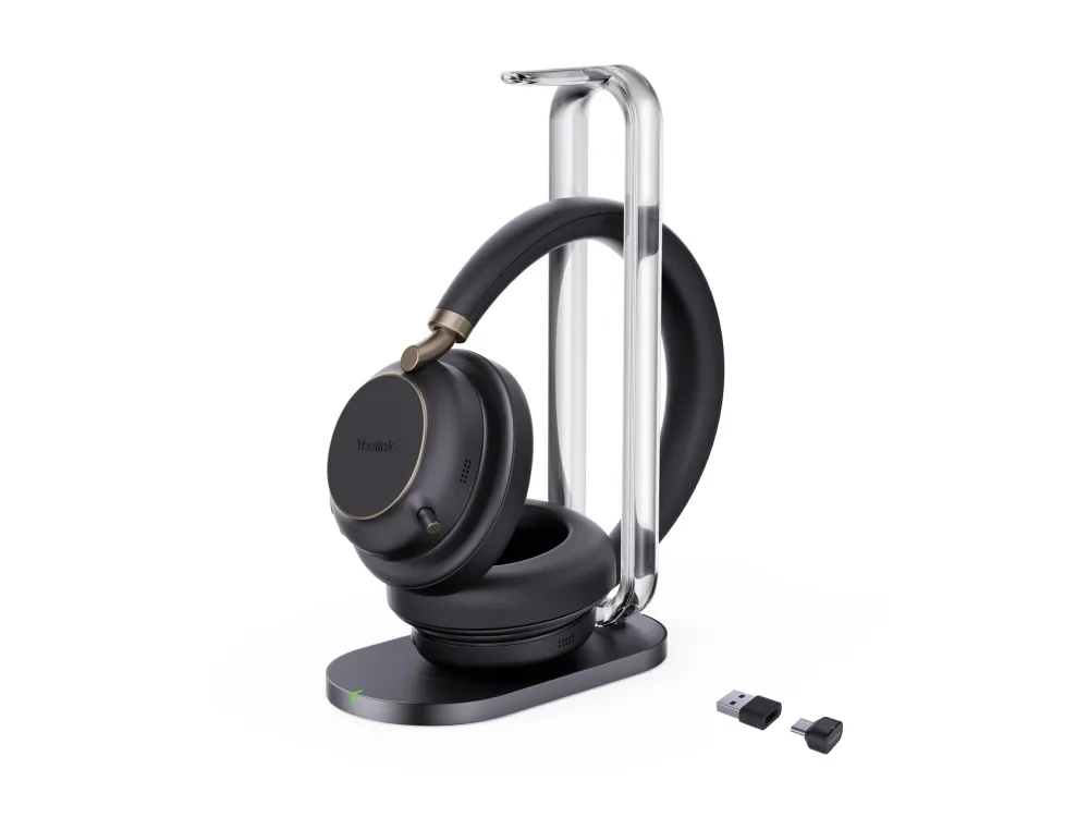 Yealink BH76 Plus - Hodesett - på øret / full størrelse - Bluetooth - trådløs - aktiv støydemping - USB-A via Bluetooth-adapter, USB-C via Bluetooth-adapter - svart - UC-sertifisert