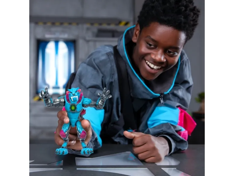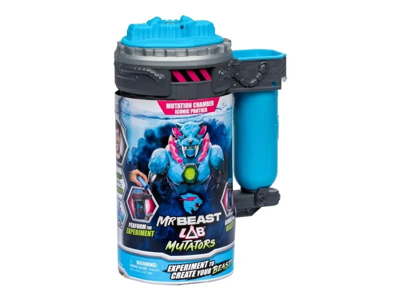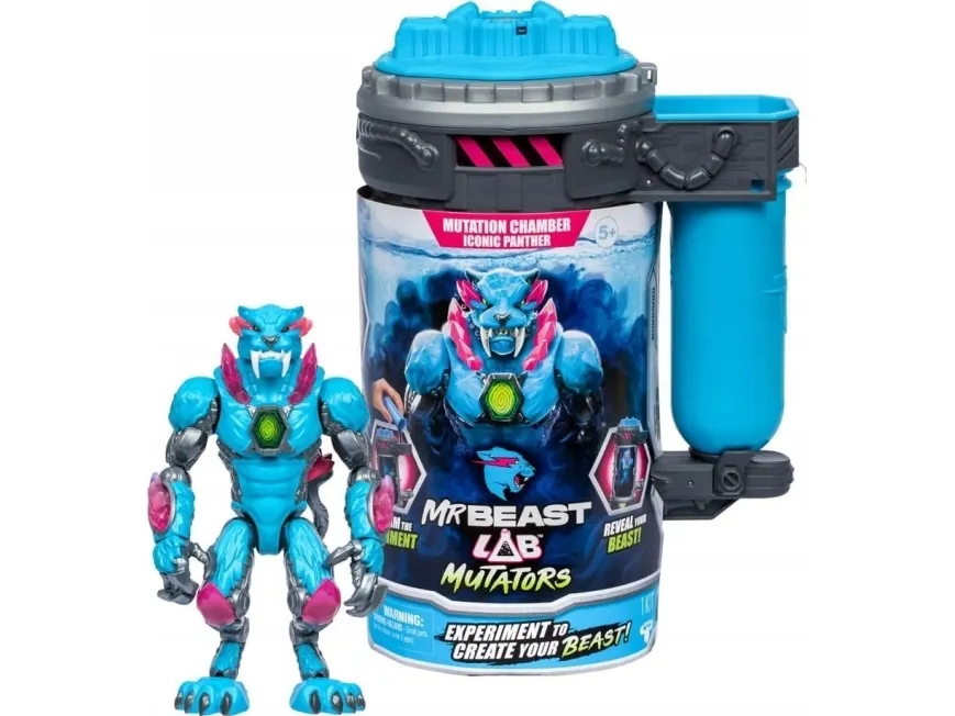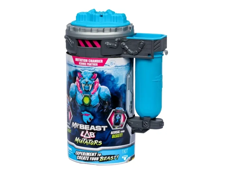 Vi præsenterer MrBeast Lab Mutators - Iconic Panther, en actionfigur! Løft spændingen op til helt nye højder ved at lave et episk eksperiment! Du kan nu mutere din helt egen MrBeast-inspirerede actionfigur. Den Ikoniske Panter! Actionfiguren er 13 cm høj og har over 20 bevægelsespunkter og så er Iconic Panther designet med MrBeasts karakteristiske pink og blå farver. Tilsæt mutationsvæske, tryk på fingeraftryksscanneren, og se din helt egen MrBeast Lab Ikoniske panter komme til live. Når du har udført eksperimentet, og afsløret din Iconic Panther, så kan det ekstraordinære eventyr begynde med MrBeast Lab Mutators. Der er tre forskellige MrBeast Lab Mutanter at samle på til episke eventyr: Iconic (ikonisk) , Stealth (Snigende), og Metallic (metallisk) Panter. Fra 5+ år