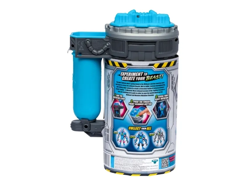 Funktioner Skab din helt egen MrBeast-inspirerede actionfigur Udfør eksperimentet og se en EPISK afsløring af MrBeast Lab Iconic Panther. Tilsæt mutationsvæsken til kammeret Tryk på fingeraftryksscanneren Se din Ikoniske Panter afsløre sig selv og blive levende. MrBeast Lab Iconic Panther Mutator er 13 cm høj. Actionfiguren har over 20 bevægelsespunkter. Den ikoniske panter inkludere MrBeasts signatur med de kendte pink og blå farver Der er hele 3 MrBeast Lab Mutator Panthers at samle på. Ingen batterier kræves 5+ år