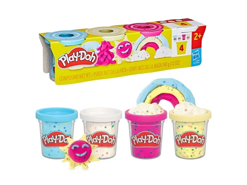 Tillför det lilla extra i barnens kreativa lek med Play-Doh Confetti 4-pack! Varje burk på 85 gram innehåller klassisk Play-Doh-modellera blandad med papperskonfetti. Ge bort i present eller komplettera Play-Doh-set (säljs separat). PLAY-DOH och HASBRO och alla relaterade varumärken och logotyper är varumärken som tillhör Hasbro, Inc.