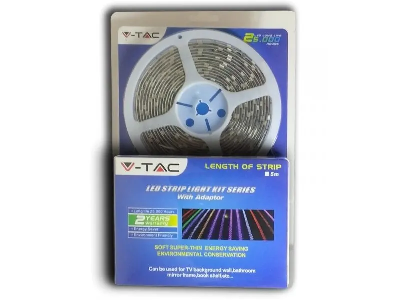 LED strip set V-TAC, IP20, 24 W, 2100 lm, 30 LED/m, various colors (RGB), with remote control, 5 m