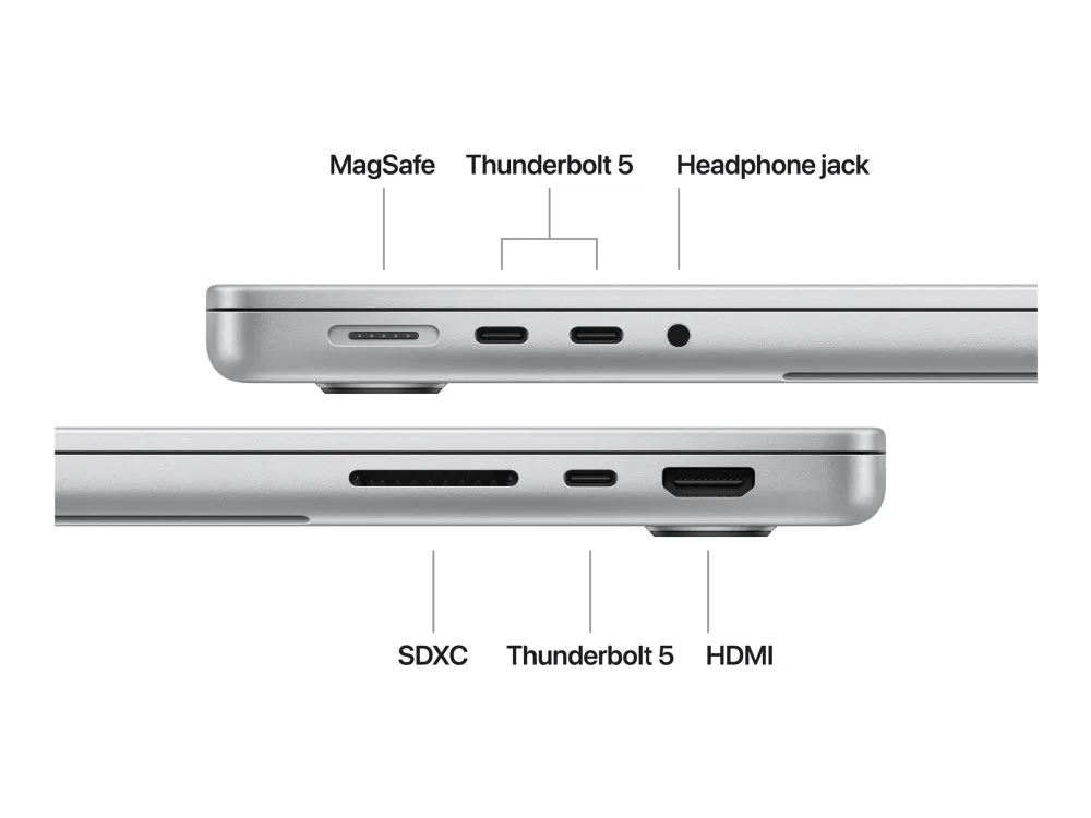 3 x USB4/Thunderbolt 5/DisplayPort 2.1 (lader) Hodetelefonsutgang HDMI