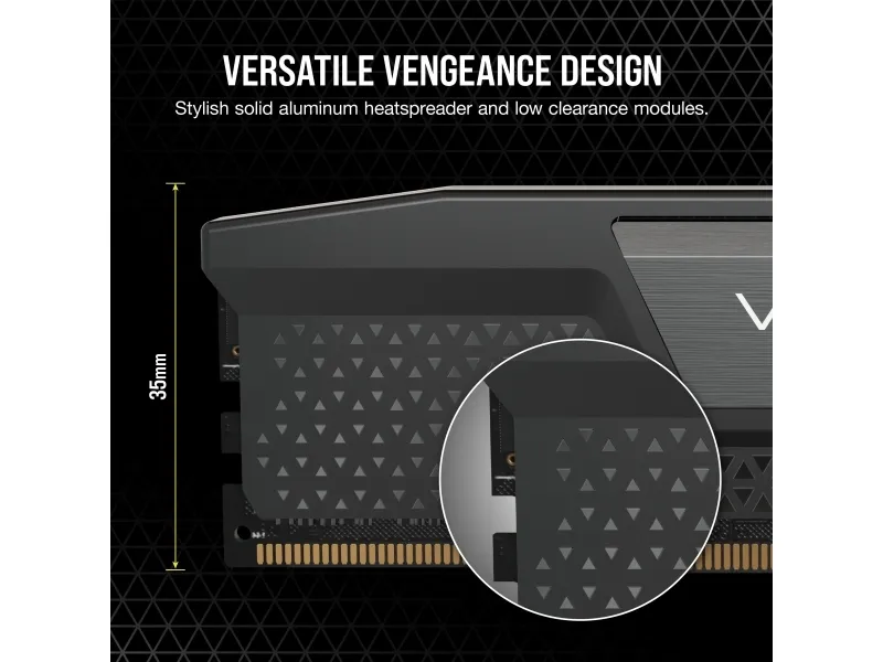 Vengeance Low Profile heat spreaders have a reduced height of 1.03". They're designed for high-performance systems with extra-large CPU coolers, small form factor system builds, or any other space-constrained application where you need high-performance memory but standard Vengeance modules might not fit.