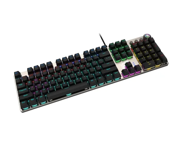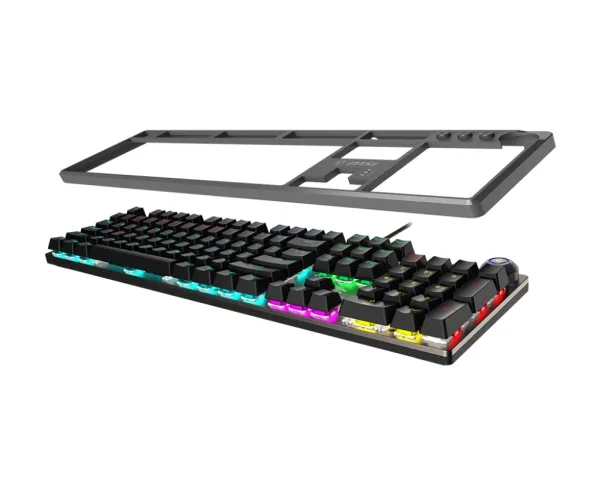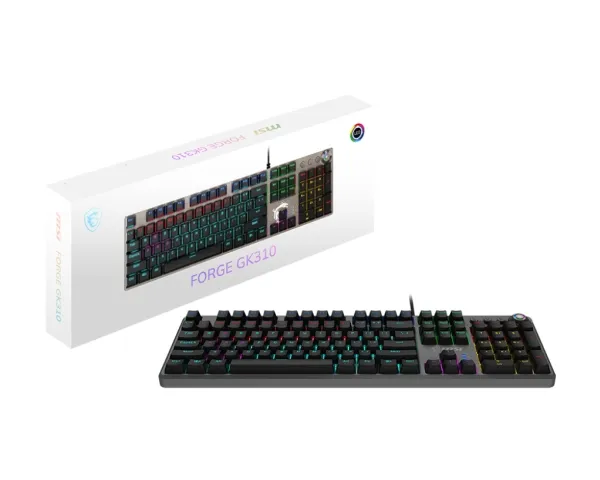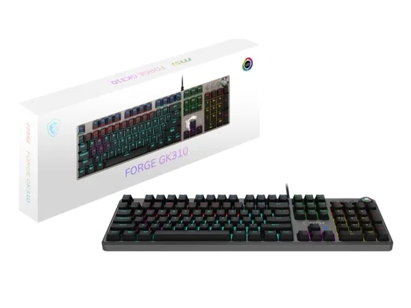 The MSI FORGE GK310 keyboard combines functionality and performance for both casual and serious gamers. With a wired connectivity technology and a robust 1.8 m cable length, this keyboard provides a reliable connection for uninterrupted gameplay. Its mechanical keyboard technology, featuring 104 keys, ensures a responsive typing experience, ideal for gaming and multimedia applications. The customizable RGB backlighting adds a vibrant touch, enhancing your setup aesthetics while allowing for a personalized user experience. Ergonomics meets versatility with adjustable height settings and a numeric keypad, catering to different playing styles and comfort preferences. The hot-swappable key switches allow for easy customization, ensuring durability and longevity with a key lifespan of up to 60 million clicks. Built with a sturdy metal frame and ABS keycaps, the MSI FORGE GK310 is designed to withstand the rigors of gaming sessions while delivering optimal performance.