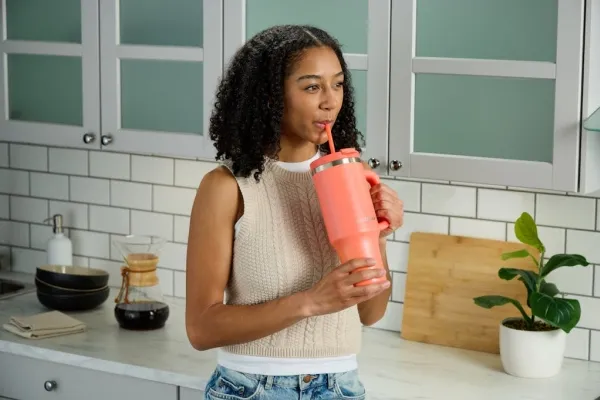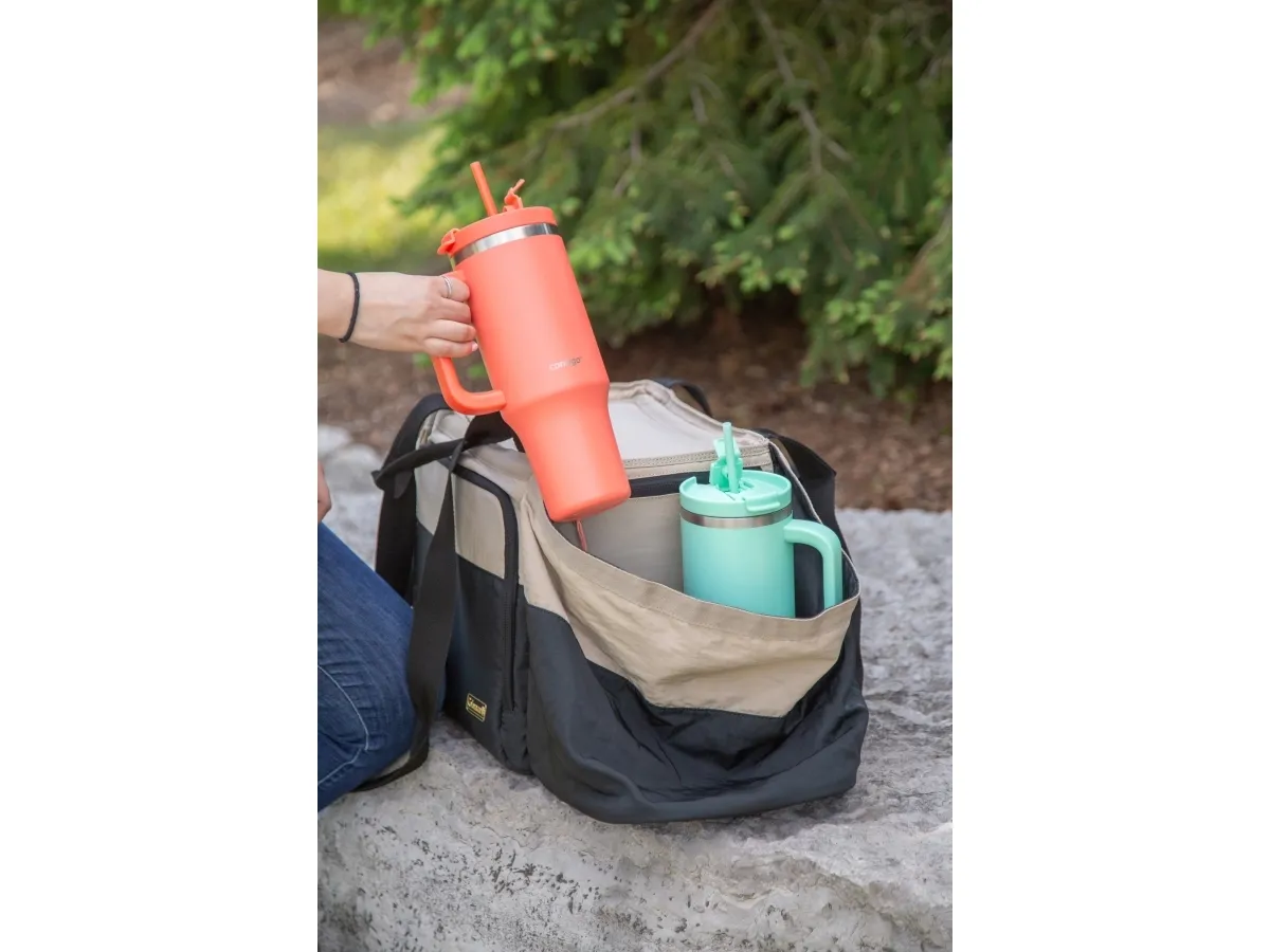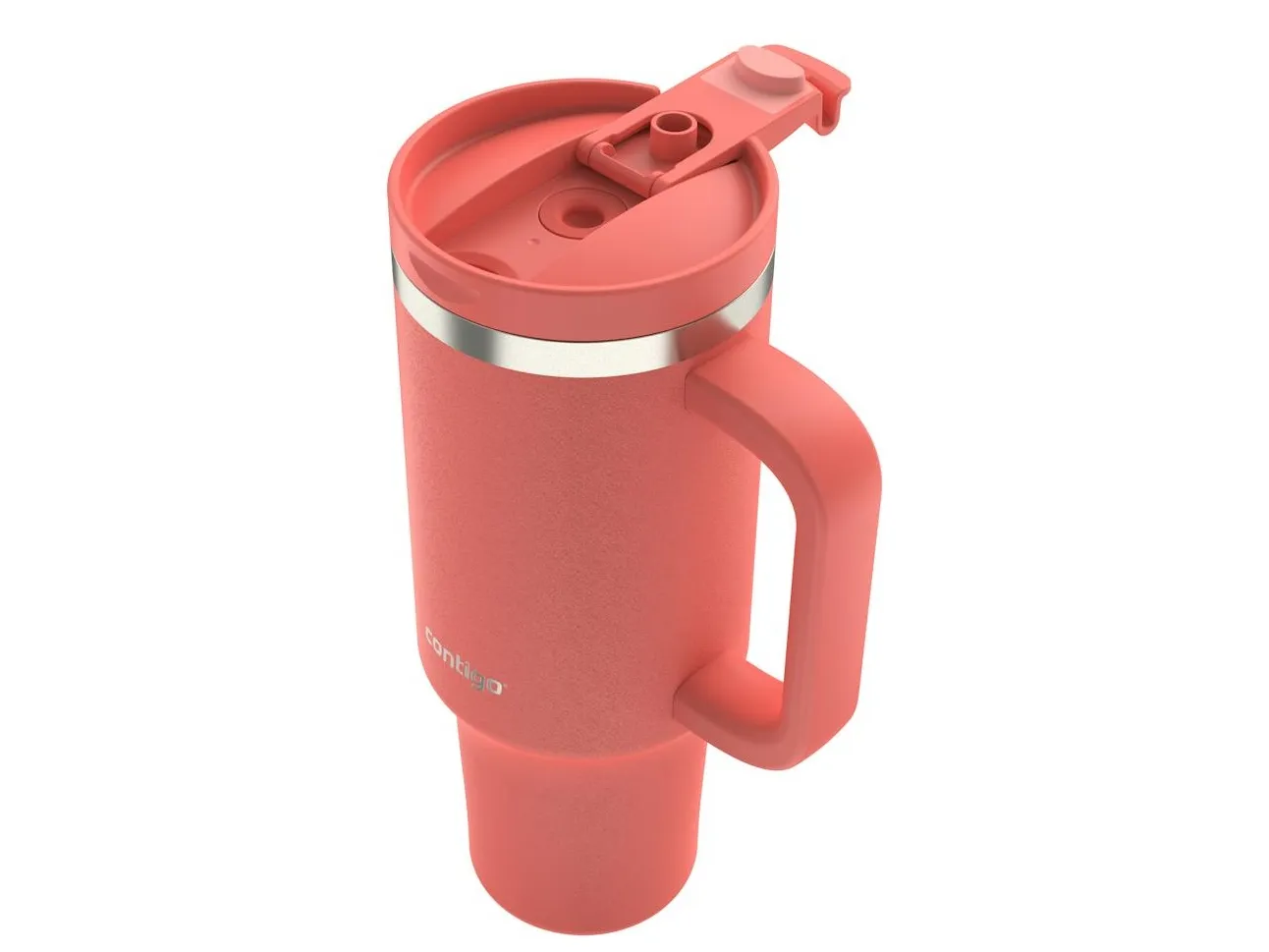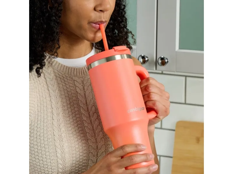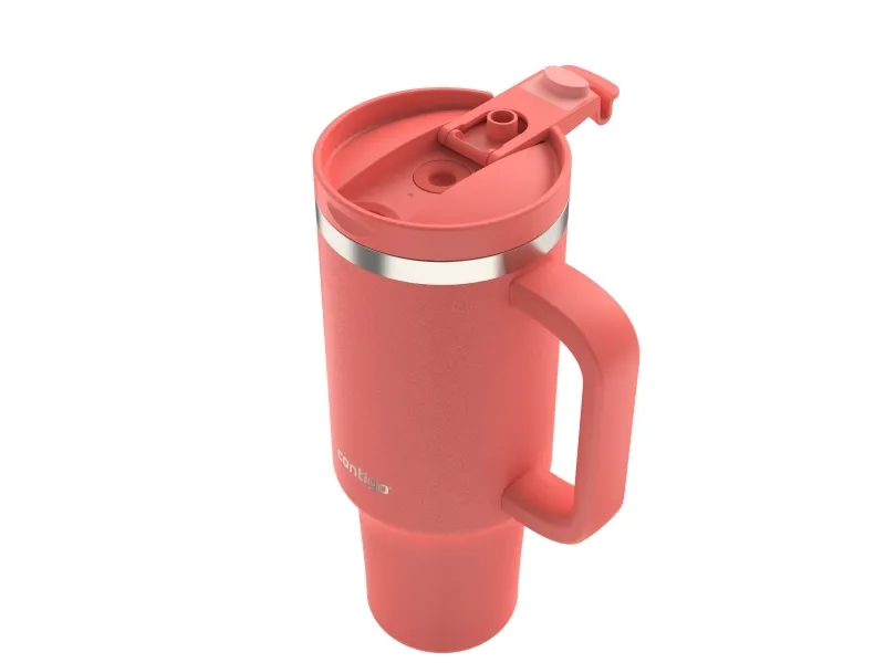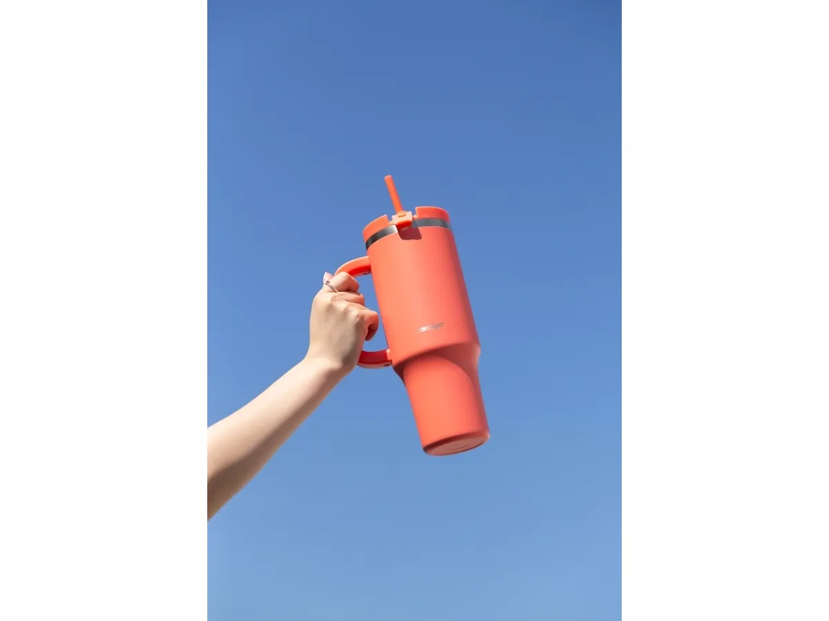 Streeterville Tumbler med håndtag Tidløs stil møder avanceret funktionalitet med Streeterville Tumbler. Denne tidløse klassiker har fået en trendy makeover og opdateringer som f.eks. et multianvendeligt låg, der giver dig mulighed for at nippe med et sugerør eller drikke direkte af koppen. Uanset hvad du vælger, er Streeterville Tumbler helt lækagesikker, så du trygt kan have din drikkelse med, når du er på farten. Med vakuumisolering i rustfrit stål med dobbeltvægge holder den drikkevarer kolde i op til 29 timer, så du kan holde dig afkølet på de varme dage. Den er også bygget til din livsstil på farten takket være et smart håndtag, og kompatibilitet med de fleste kopholdere. Fås i de fem flotte farver: Reef, Coral, Indigo, Salt og Darkstone. Krop, låg og sugerør tåler opvaskemaskine på øverste hylde. Alle dele er BPA-fri. 100 % lækagesikker uden sugerør og med lukket låg. Indhold: 1200 ml.
