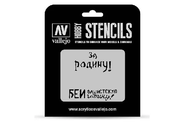 Vallejo Stencils offers a wide selection of references and themes for modellers and crafters. Translucent and flexible material, adapts easily to the surfaces of the model. Washable, easy to handle, the stencils facilitate the reproduction of all kind of hobby effects and textures. Fantasy and military dioramas, tanks, buildings, aircrafts, spaceships, Sci-Fi, these can now be enhanced with details for interesting and simple results. Available in several categories: . AFV Markings: Badges, numbers, slogans, signs, unit and nationality markings designed for historical and modern armoured vehicles. . Camouflages: Patterns for armoured vehicles and aircraft camouflages; available in several scales. . Air Markings: Badges, numbers, unit and nationality markings, registries and surface effects designed for historical and modern aircraft. . Lettering & Signs: Traffic signs, fonts and signs for dioramas, adverts, retail signs and graffities. . Sci-Fi & Fantasy: Badges, numbers, effects, panels and patterns designed for Sci-Fi vehicles and spaceships. . Texture Effects: Splashes, textures, cracks, stains and other physical texture and effects.